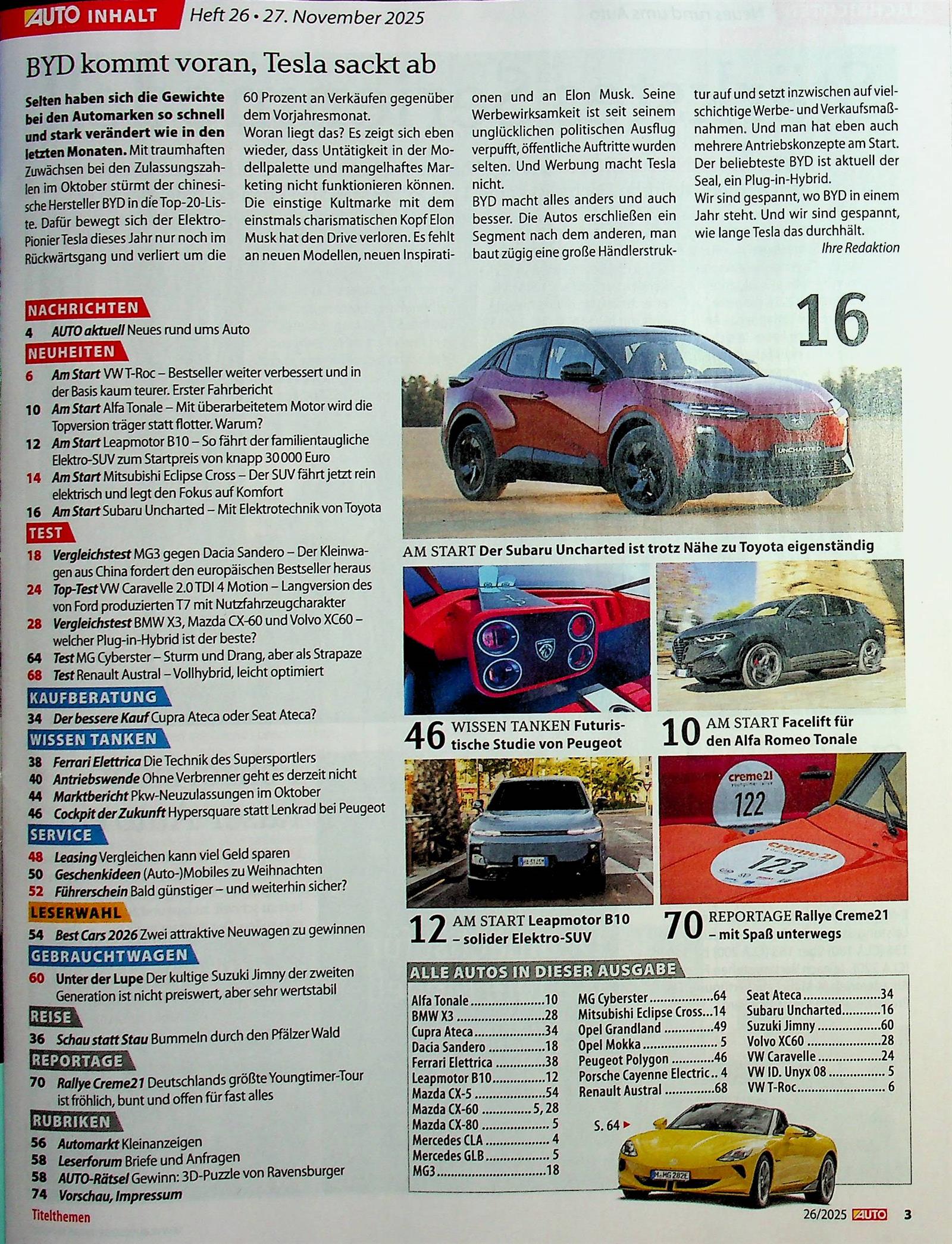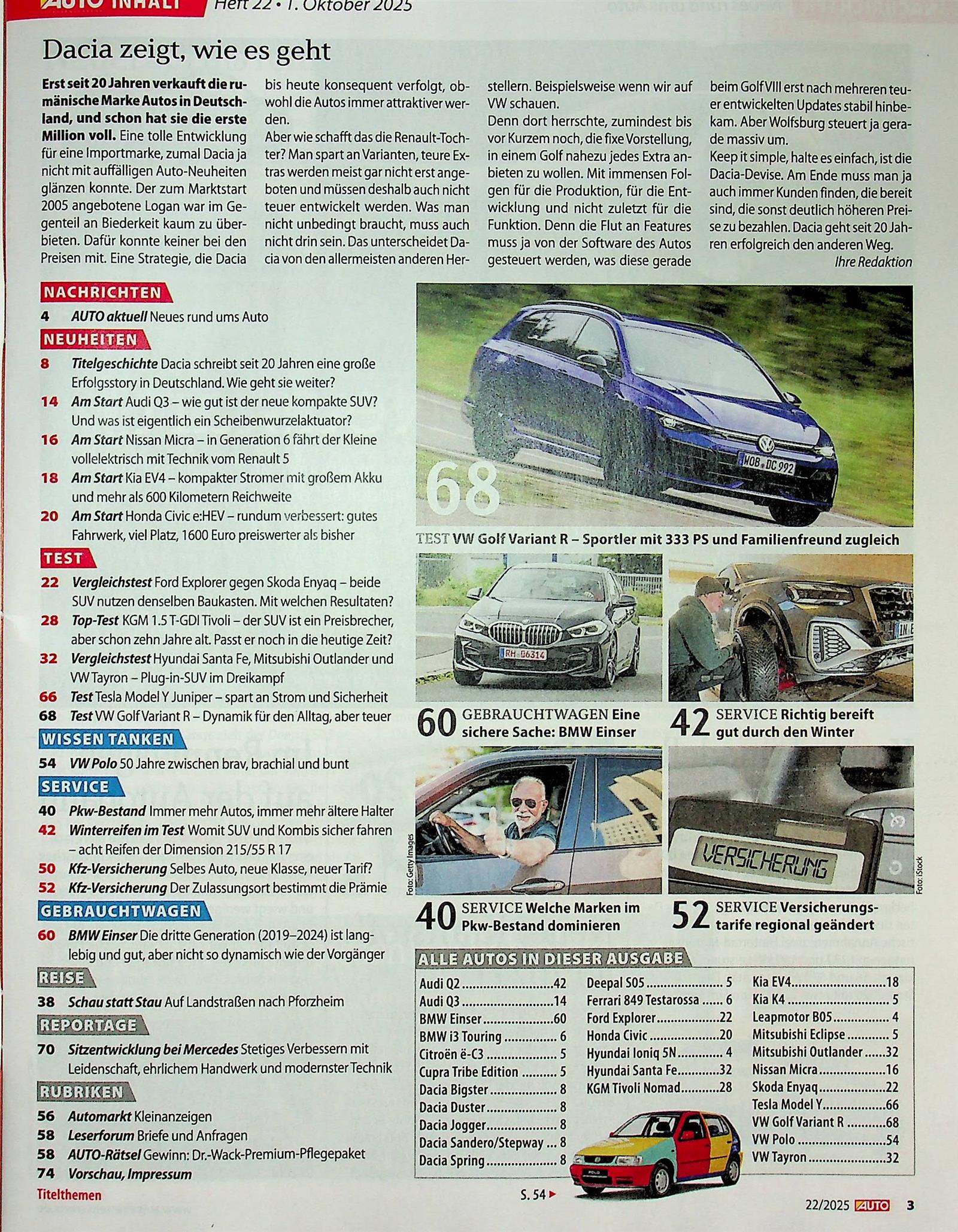 Beste Zeitschrift zum Thema Auto am Markt. Ohne blumige Umschreibungen werden hier die Automobile in sachlicher Form vorgestellt. Der Nutzen für den Leser ist ungleich höher als bei anderen Erzeugnissen dieses Genres zumal hier Wagen vorgestellt werden, die für Otto und Ottilie Normalverbraucher erschwinglich sind und von diesen auch gefahren werden. Prima Kompass durch die sich ständig ändernde Welt des Autobaus.