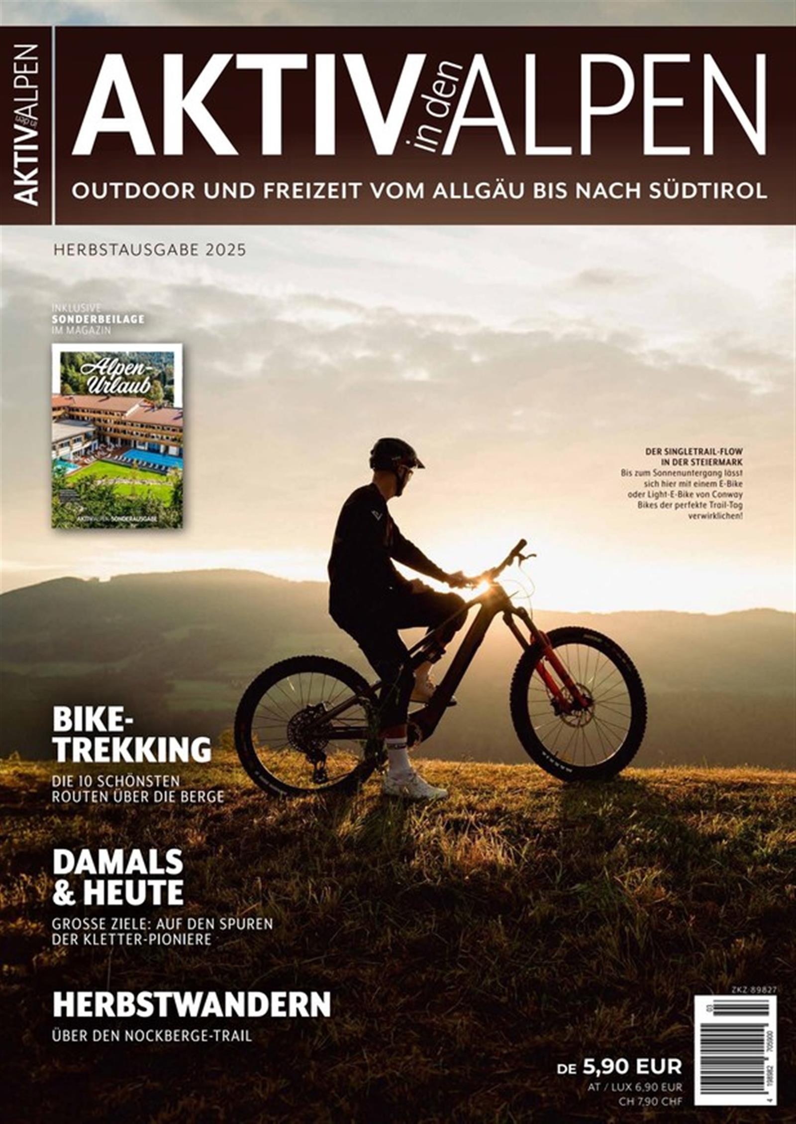 Der Alpenraum bietet unzählige Möglichkeiten für eine aktive Freizeitgestaltung, besticht durch eine wunderschöne Natur und lässt so das Herz von Outdoor-Enthusiasten höherschlagen. Das AKTIV in den ALPEN Magazin berichtet über alles Wissenswerte rund um Outdoor und Freizeit in einer der schönsten Bergwelten Europas, und dient als Inspiration für die nächste Reise. Der gesamte Alpenraum, von Südtirol bis zum Allgäu, wird hier sportlich entdeckt und liebevoll porträtiert.