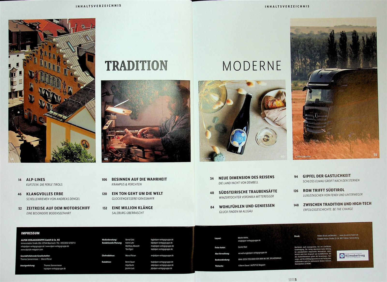 Das ALPSTYLE ist ein Hochglanzmagazin, welches sich dem exklusiven Alpen-Lifestyle in all seiner Vielfalt zuwendet. Es verbindet Tradition mit Moderne und porträtiert die Genussmenschen und Modeeinflüsse dieser einzigartigen Bergregion Europas. In atemberaubenden Bildern präsentiert das Magazin gehobene Häuser und luxuriöse Hotels in unbeschreiblich schöner Bergkulisse, und inspiriert seine Leser*innen zum stilvollen Entdecken des Alpenlandes.