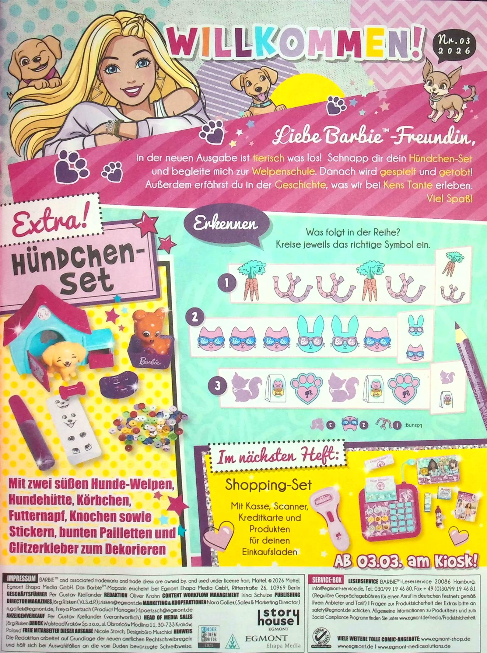 Die Zeitschrift Barbie bietet eine Vielzahl von Inhalten, die sich an junge Mädchen richten und die Fantasie anregen. Im Mittelpunkt stehen spannende Geschichten über die Abenteuer der ikonischen Puppe und ihrer Freunde, die oft in inspirierenden Umgebungen spielen. Zusätzlich enthält die Zeitschrift kreative Aktivitäten, wie Mal- und Bastelanleitungen, die es den Leserinnen ermöglichen, selbst kreativ zu werden. Auch Modetipps und Styling-Ideen sind Teil des Magazins und sprechen den Modegeschmack der Zielgruppe an. Ein weiterer wichtiger Aspekt sind Artikel, die positive Werte wie Freundschaft, Selbstvertrauen und Kreativität vermitteln. Die Verbindung von Unterhaltung und Bildung sorgt dafür, dass die Zeitschrift sowohl informativ als auch unterhaltsam ist.
