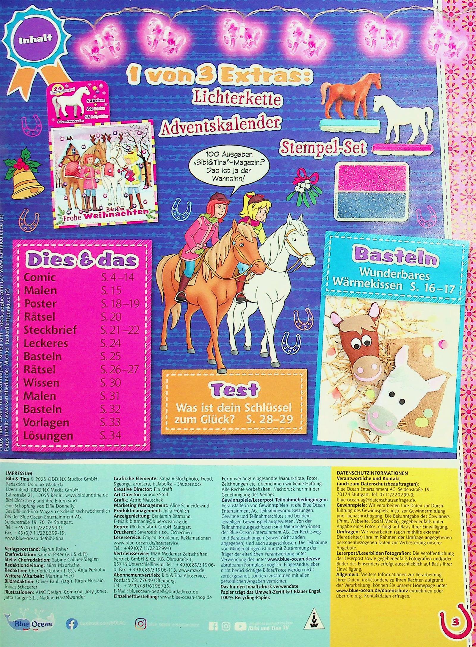 Aufbauend auf den Erfolg der Serie „Bibi Blocksberg“ wurde mit Bibi & Tina ein neues Level erreicht. Die Geschichten um die beiden Freundinnen werden in Form von lustigen und lehrreichen Comics erzählt. Dabei geht es vornehmlich um Themen wie Freundschaft und Zusammenhalt. Des Weiteren beziehen sich die Abenteuer des unternehmungslustigen Gespanns immer wieder auf das bei Mädchen beliebte Thema Pferde. Obendrein erfahren die Leser in zahlreichen Wissensartikeln auch viel über andere Tiere. Das Heft ist gespickt mit vielen interessanten Informationen für wissbegierige junge Lesende. Dazu gibt es Tipps und Anleitungen zum Basteln und Selbermachen. Eine Seite mit Witzen, Rätseln und Tests sowie regelmäßige Extras wie kleine Modelle für den eigenen Pferdehof zum Spielen und leckere Rezepte runden die Zeitschrift ab und lassen die Kinderherzen der Fans von Bibi & Tina höherschlagen.