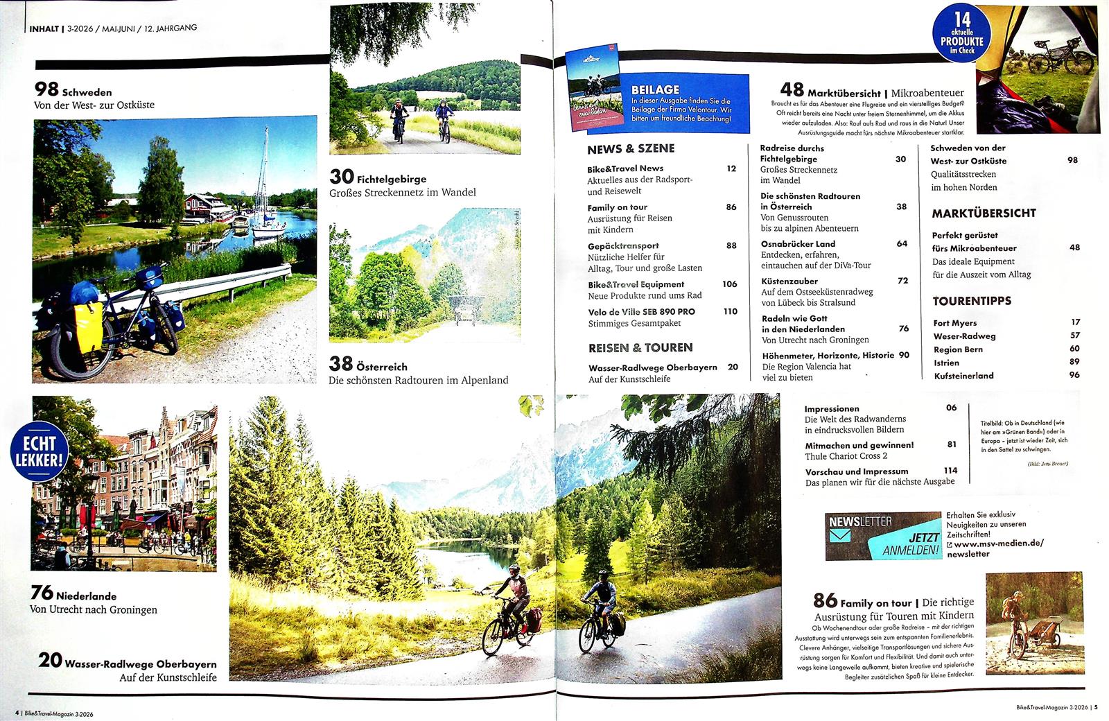 Radreisen haben immer Saison. Und so machen sich die ambitionierten Biker*innen bereits Gedanken, wohin der nächste Trip gehen soll. Da kommt das Magazin Bike & Travel gerade rechtzeitig, um tolle Touren und Strecken vorzustellen. Bike & Travel bietet den nicht zu unterschätzenden Vorteil, dass dieses Magazin an alle Radler-Typen denkt und sowohl Tagestouren, Wochenendtrips, richtig lange Reisen in der Natur, an Flüssen entlang oder in attraktiven Städten vorstellt.