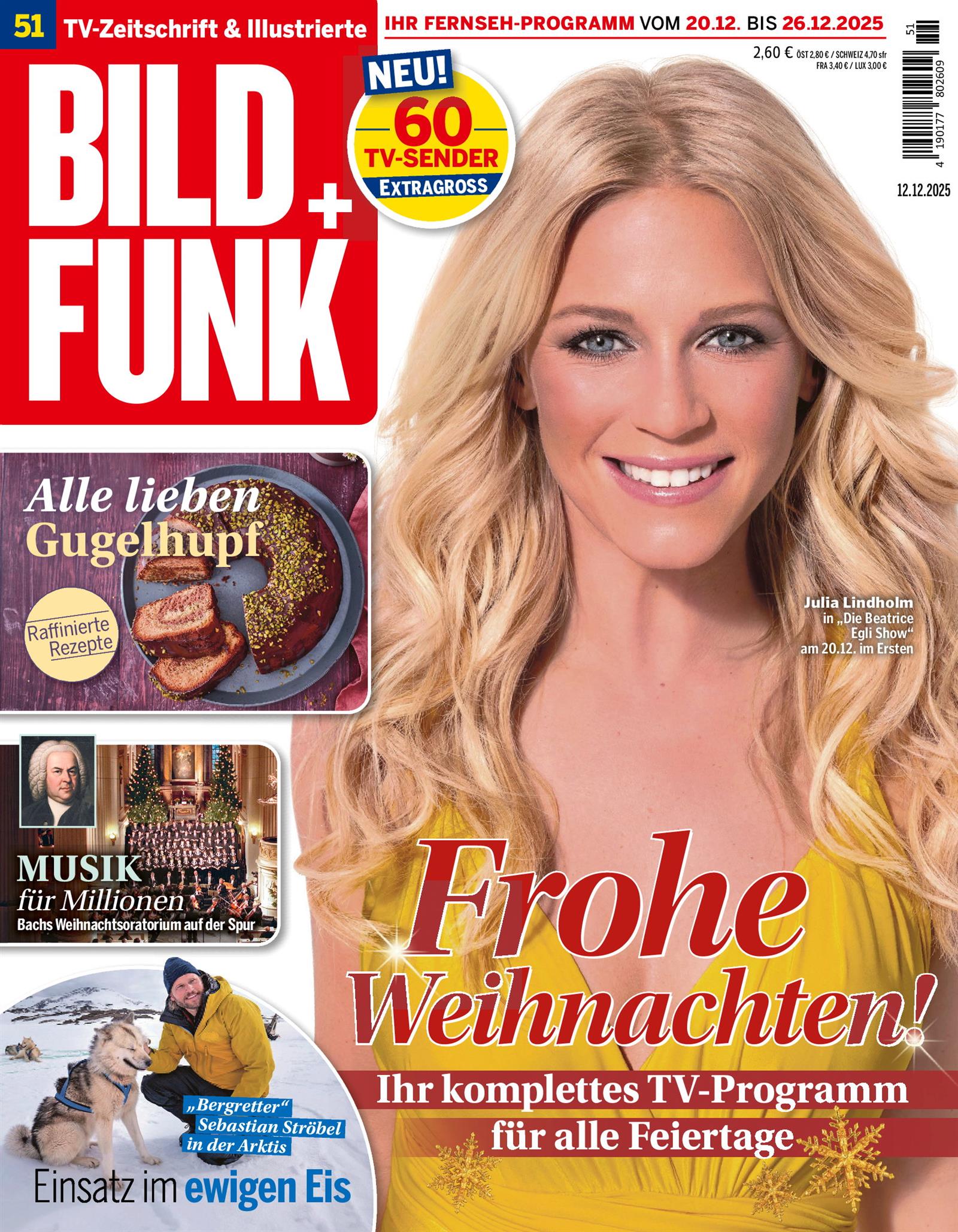 Die Fernsehzeitschrift Bild + Funk mit Digital Extra informiert über das TV-Angebot der kommenden Woche. Öffentlich-rechtliche, Private und Dritte Programme, bis hin zu den relevantesten Kanälen der Nachbarländer sind auf 12 Seiten täglich im Magazin aufgelistet. Altersangaben und Symbole bieten Orientierung und Entscheidungshilfe in der großen Auswahl an Sendungen.