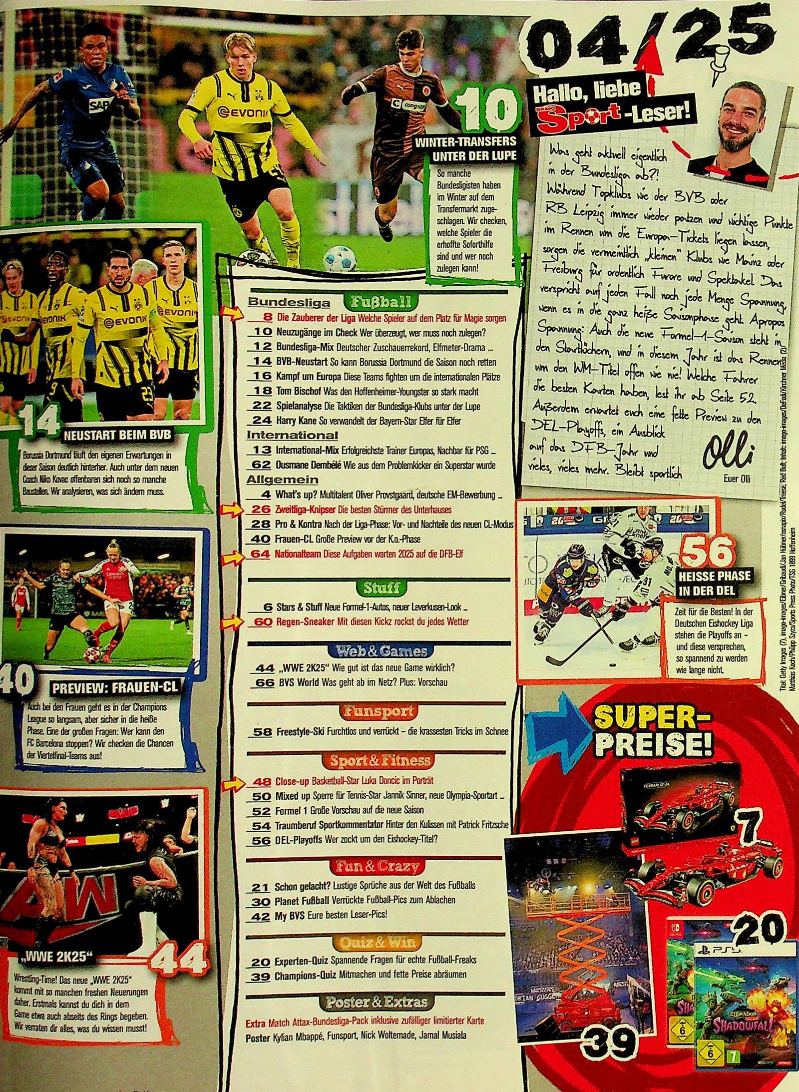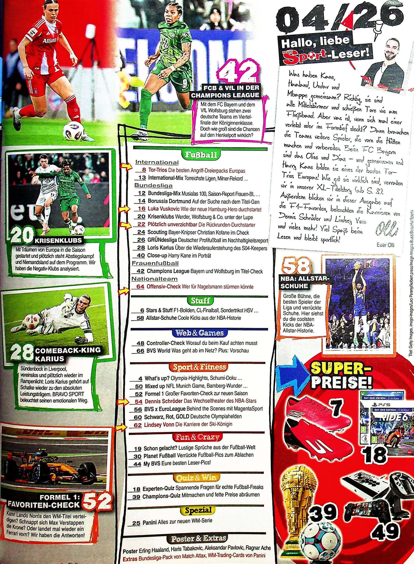 Und natürlich legt auch diese Zeitschrift mittlerweile großen Wert auf Internet-Topics, das Auftreten des Sport-Stars in Social Media und den Trend eSports, also ein Computerspiele-Wettkampf im Mehrspielermodus. Zudem geht es um jede Menge weiterer spannender Inhalte wie Spaß beim Sport, Fitness-Themen, Sportmode, Equipment und Unterhaltung. Das macht die Zeitschrift zu einem der wichtigsten Hefte für junge Sport-Enthusiasten.
