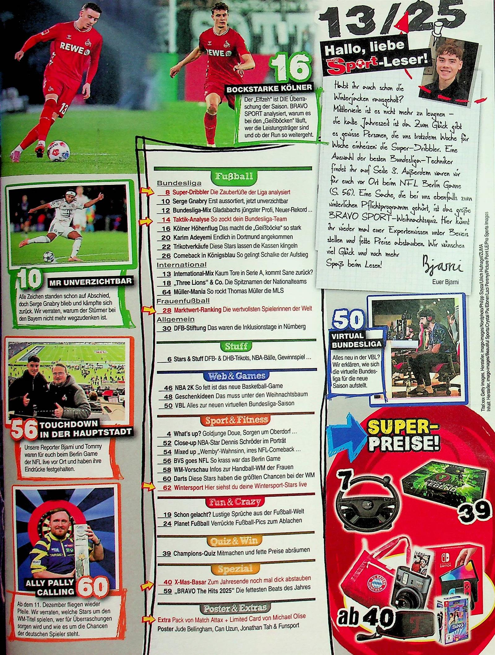 Mit ihrer spannenden, informativen und hochwertig recherchierten Berichterstattung zum Lieblingsthema vieler junger Sport-Fans – Fußball – ist die Bravo Sport eine der wichtigsten Infoquellen für alle sportlichen Ereignisse. Das macht die Jugendzeitschrift zu einer guten Alternative zu den großen und etablierten Fußballmagazinen. In jeder Ausgabe dreht sich alles um Fußball-Stars, Mannschaften, Bundesliga und internationale Ligen, Transfers, Traumtore, Hintergrundgeschichten aus dem Privatleben der Promis und viele weitere News aus der Welt des Fußballs. Auch die zweite Bundesliga kommt in der Bravo Sport nicht zu kurz. Zudem wird immer neues Equipment und die neueste Mode auf dem Spielfeld vorgestellt. Und auch die Leserinnen und Leser kommen im Forum zu aktuellen Fußball-Themen zu Wort.