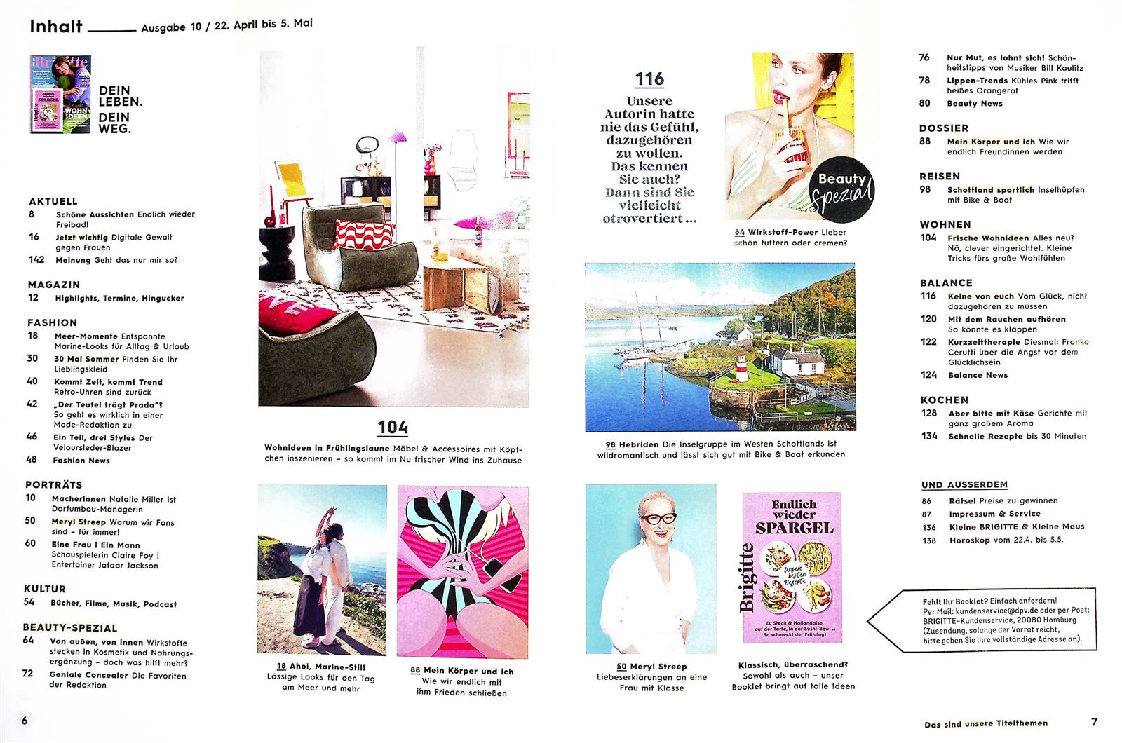 Brigitte steht seit ihrer Gründung im Jahr 1952 für Qualität und Tiefe. Die Zeitschrift zeichnet sich durch erstklassigen Journalismus aus, der direkt auf die Interessen und Bedürfnisse der Frauen zugeschnitten ist. Besonders hervorzuheben ist die integrative Art der Themenbearbeitung, die nicht nur informiert, sondern auch zum Nachdenken anregt und Diskussionen fördert. Darüber hinaus setzt Brigitte mit der jährlich erscheinenden Brigitte-Diät Maßstäbe im Bereich der gesunden Ernährung und Lebensführung. Dies macht sie zu einem unverzichtbaren Begleiter für Frauen, die ihr Leben aktiv und bewusst gestalten möchten.