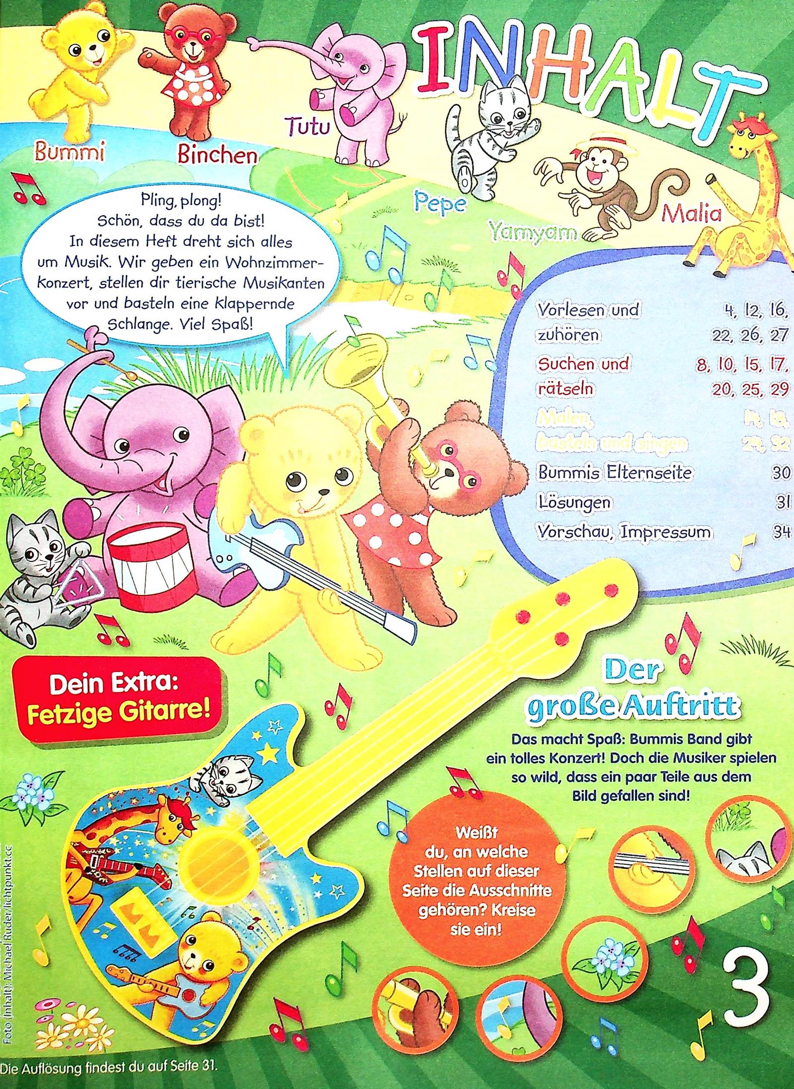 Der wuschelweiche Bär präsentiert seiner Leserschaft eine bunte Spiele-, Lern- und Mitmachwelt, in der nach Herzenslust gestaltet, gebastelt, gespielt, gesungen und geknobelt werden darf. So sieht es zumindest aus. Mit großen und kleinen Ideen bringt er die Kinder spielerisch zum Denken und Handeln. Ein sehr kleines Märchenbuch und eine sehr große Mal-Seite erhöhen das Vergnügen. Das pädagogische Lern- und Spielemagazin vermittelt Kindern im Alter von 3 bis 7 Jahren spielerisch ein grundlegendes Vorschulwissen und lädt sie dazu ein, auf den liebevoll gestalteten Bastel- und Malseiten selbst aktiv zu werden. Vorlesegeschichten und ein Tier-Foto gehören zum festen Bestandteil der Zeitschrift.
