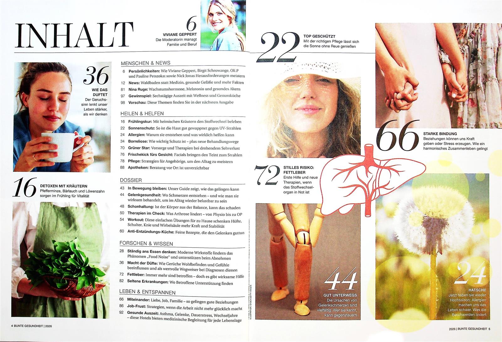 Bunte Gesundheit erscheint bei Hubert Burda Media. Die Mediengruppe vereint viele bekannte Titel unterschiedlicher Zeitschriftensegmente unter seinem Dach. Ist zudem Deutschlands größtes Food-Medienhaus. Zu den populären Titeln zählen die TV Spielfilm, eines der führenden TV-Magazine, Freundin, als erfolgreichstes deutsches Frauenmagazin, oder Chip Plus, eines der meistgelesenen Männer-Magazine Deutschlands mit dem Schwerpunkt digitale Lebenswelt. Das sind nur drei von über 600 Marken aus dem Hause Burda.