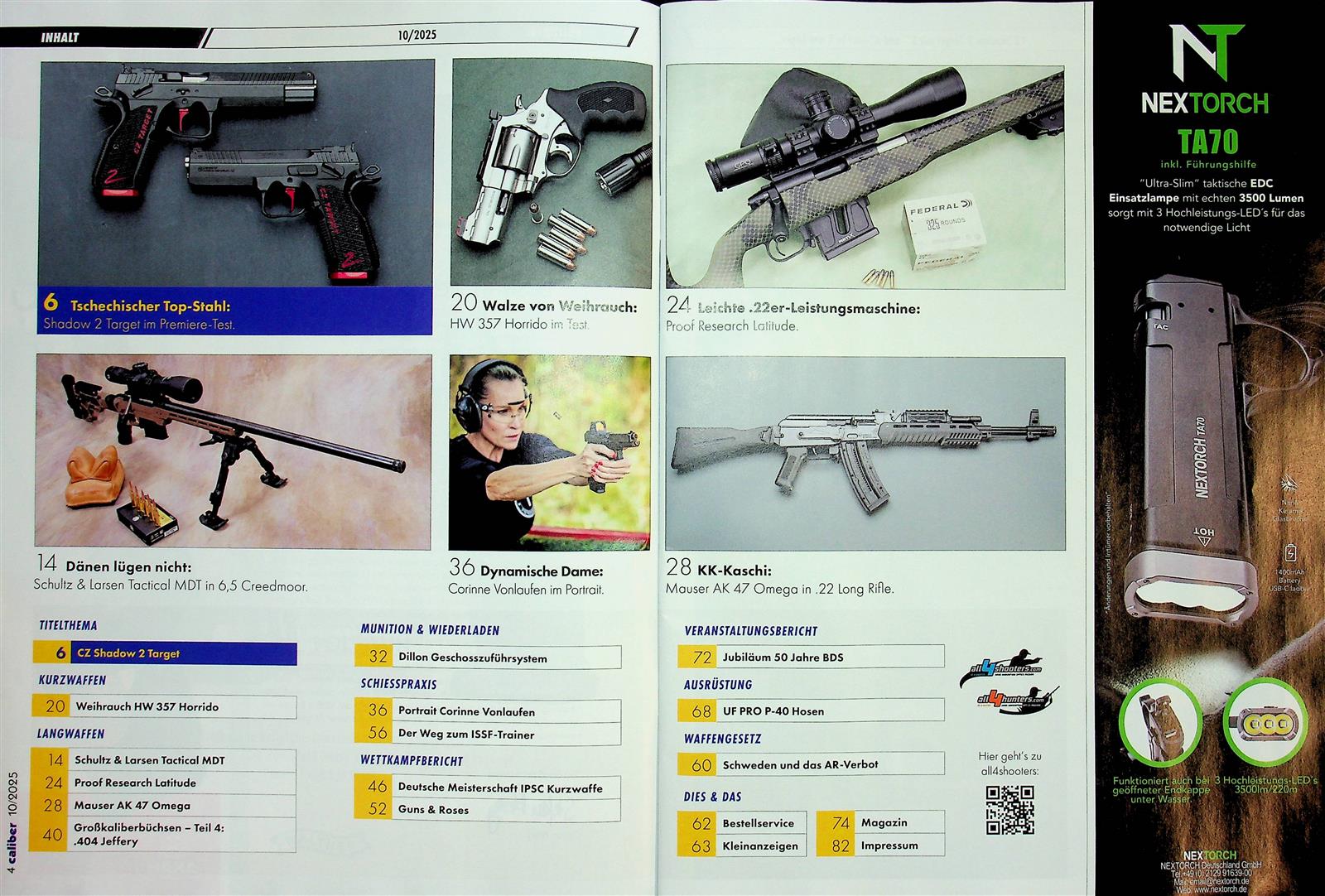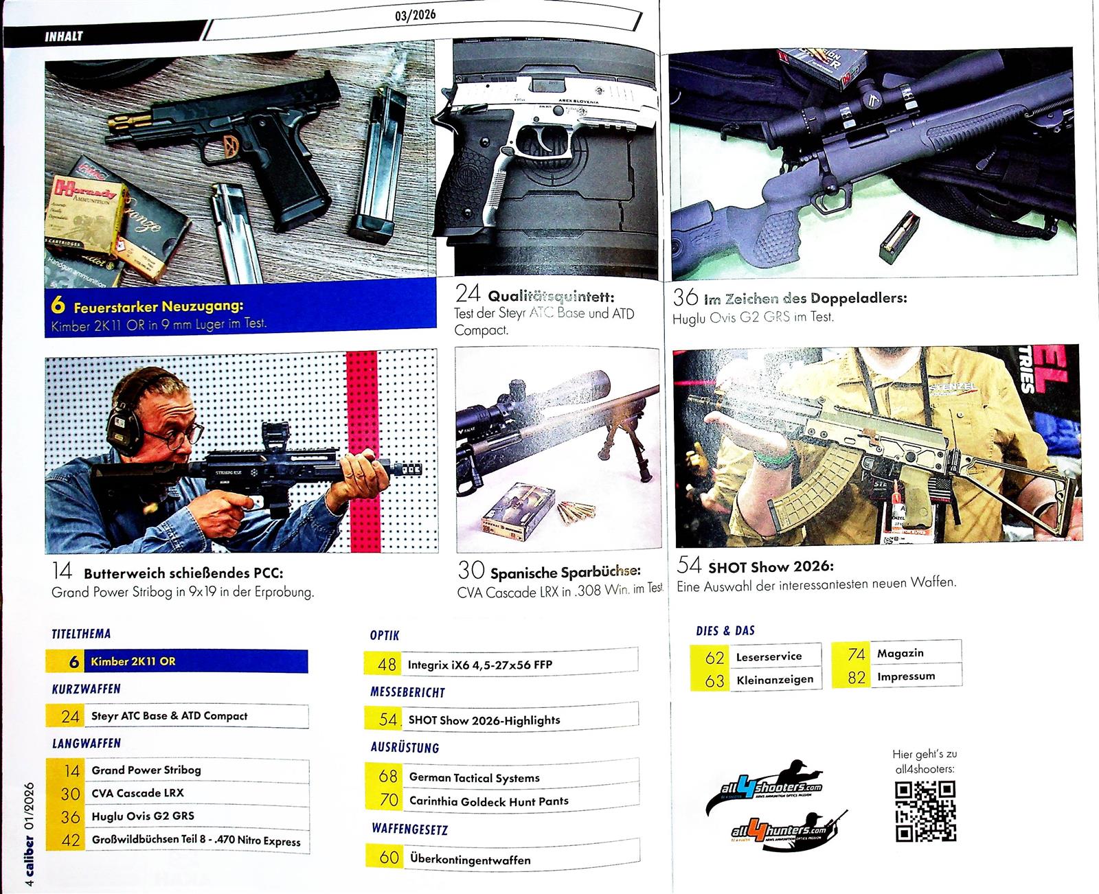 In- und ausländische Meister aus dem Sportbereich, aber auch professionelle Waffenträger, berichten aus ihrer täglichen Praxis. Das Testteam besteht aus international anerkannten Experten. Caliber zeichnet sich insbesondere durch seine schnörkellosen, praxisbezogenen Tests aus.