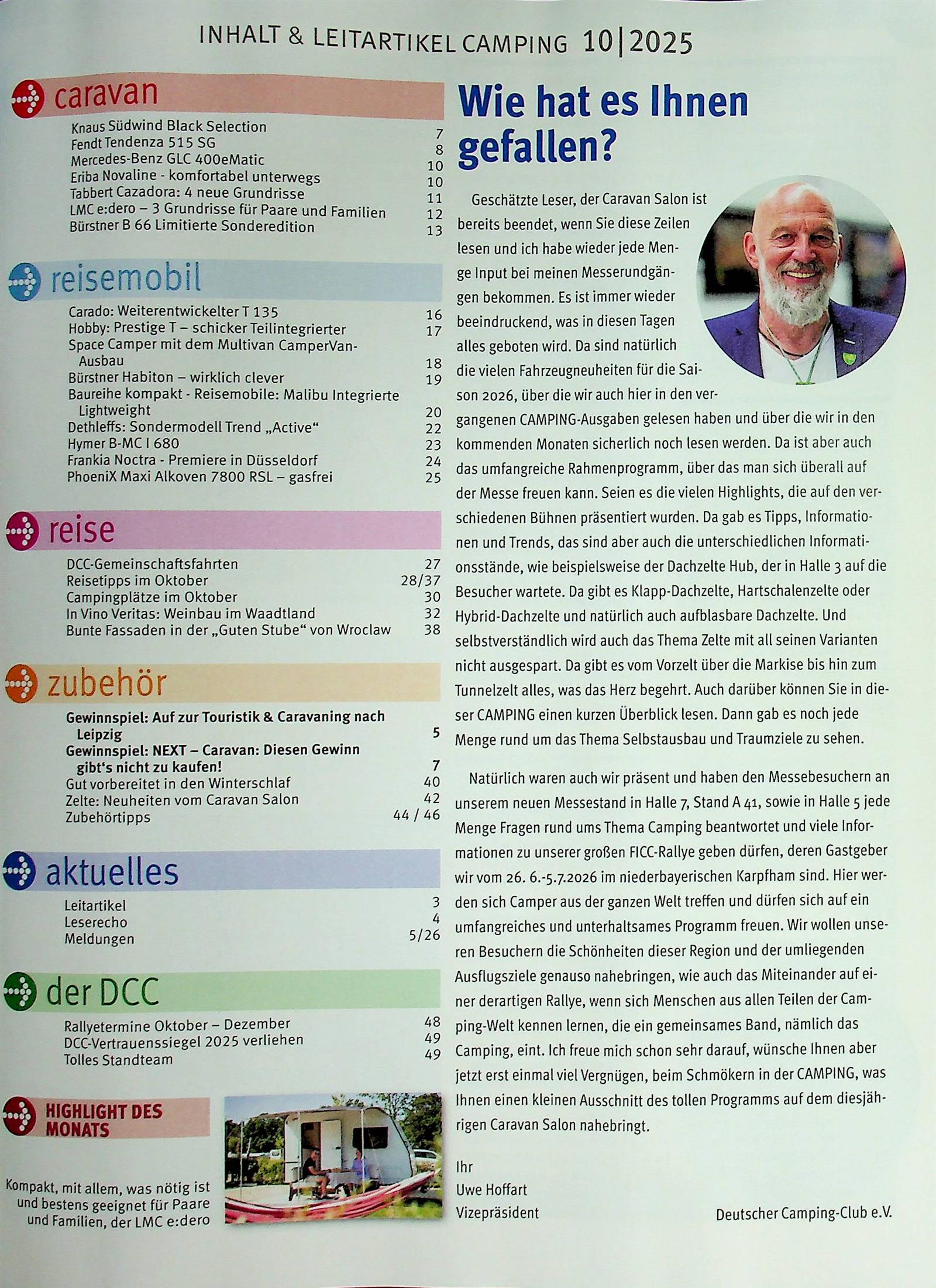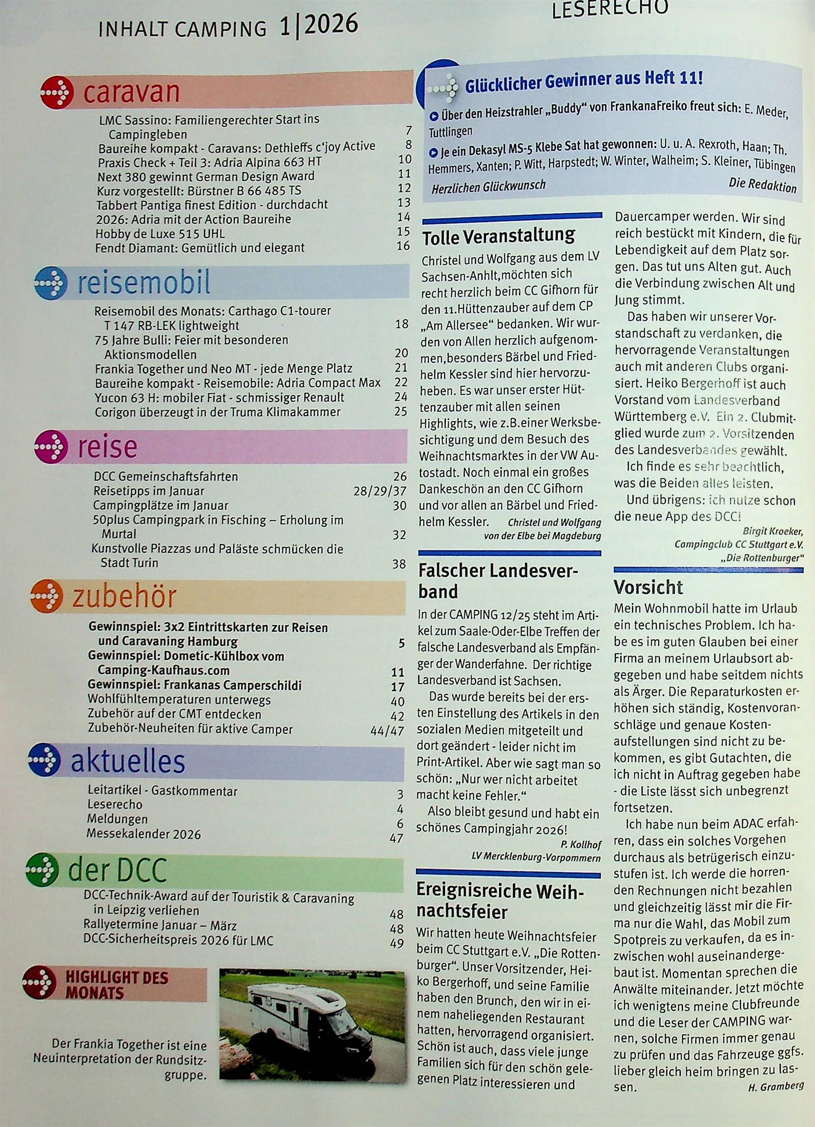 Die Zeitschrift Campingbietet eine breite Palette von Inhalten, die speziell für Camping-Enthusiasten und Outdoor-Liebhaber konzipiert sind. Testberichte zu Zelten, Wohnmobilen und Camping-Ausrüstungen helfen Lesern, fundierte Kaufentscheidungen zu treffen. Zudem werden Reiseziele und Campingplätze in Deutschland und Europa vorgestellt, die sowohl für Familien als auch für Abenteurer geeignet sind. Die Zeitschrift enthält auch nützliche Tipps und Tricks zum Campen, einschließlich Ratschlägen zur Zubereitung von Mahlzeiten im Freien und zur Auswahl der richtigen Ausrüstung. Außerdem werden spannende Interviews mit erfahrenen Campern und Experten geführt, die inspirierende Geschichten und wertvolle Einsichten teilen.