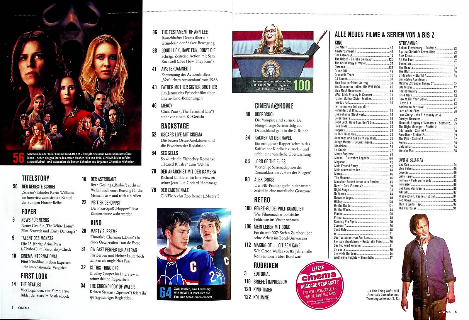 Bereits seit 1975 versorgt die Zeitschrift Cinema ihre Leserschaft mit Nachrichten aus der Welt des Films. Das Magazin erscheint einmal im Monat.