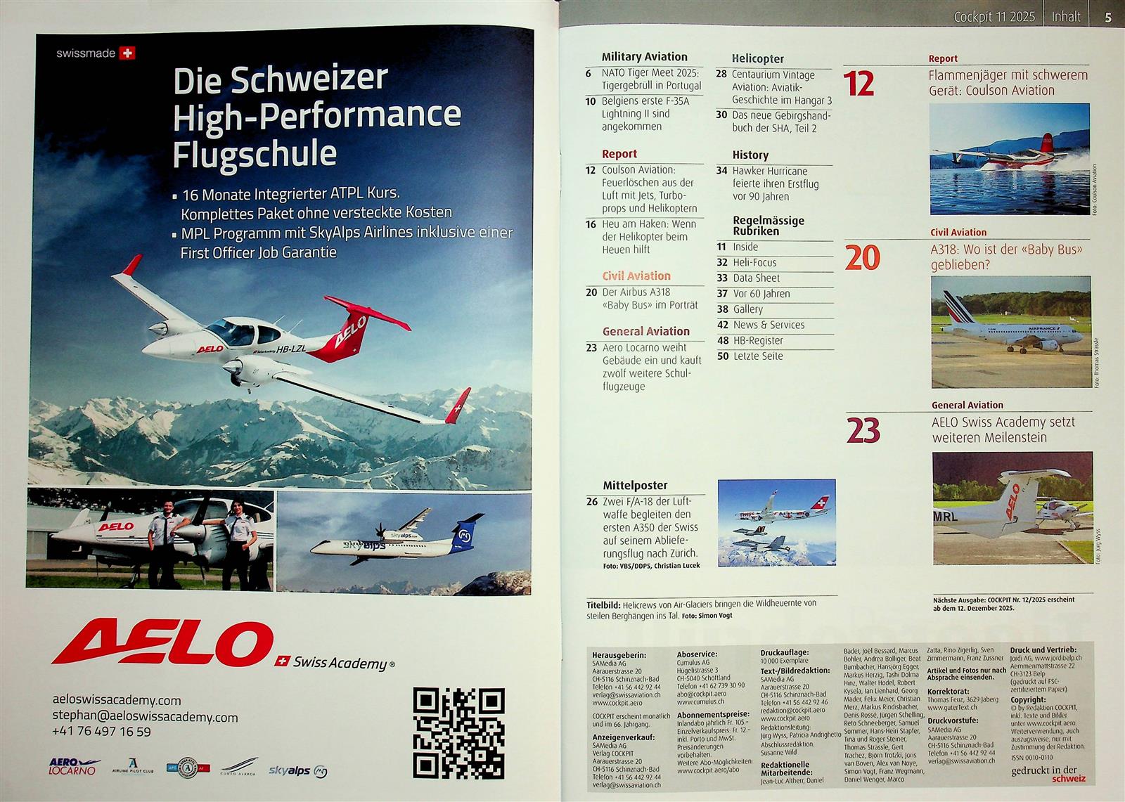 Cockpit Schweiz bringt monatlich einen Querschnitt durch die gesamten Luftfahrtthemen. Diese reichen von Military Aviation, über Civil Aviation, vermehrt auch über Business Aviation und Helicopter.