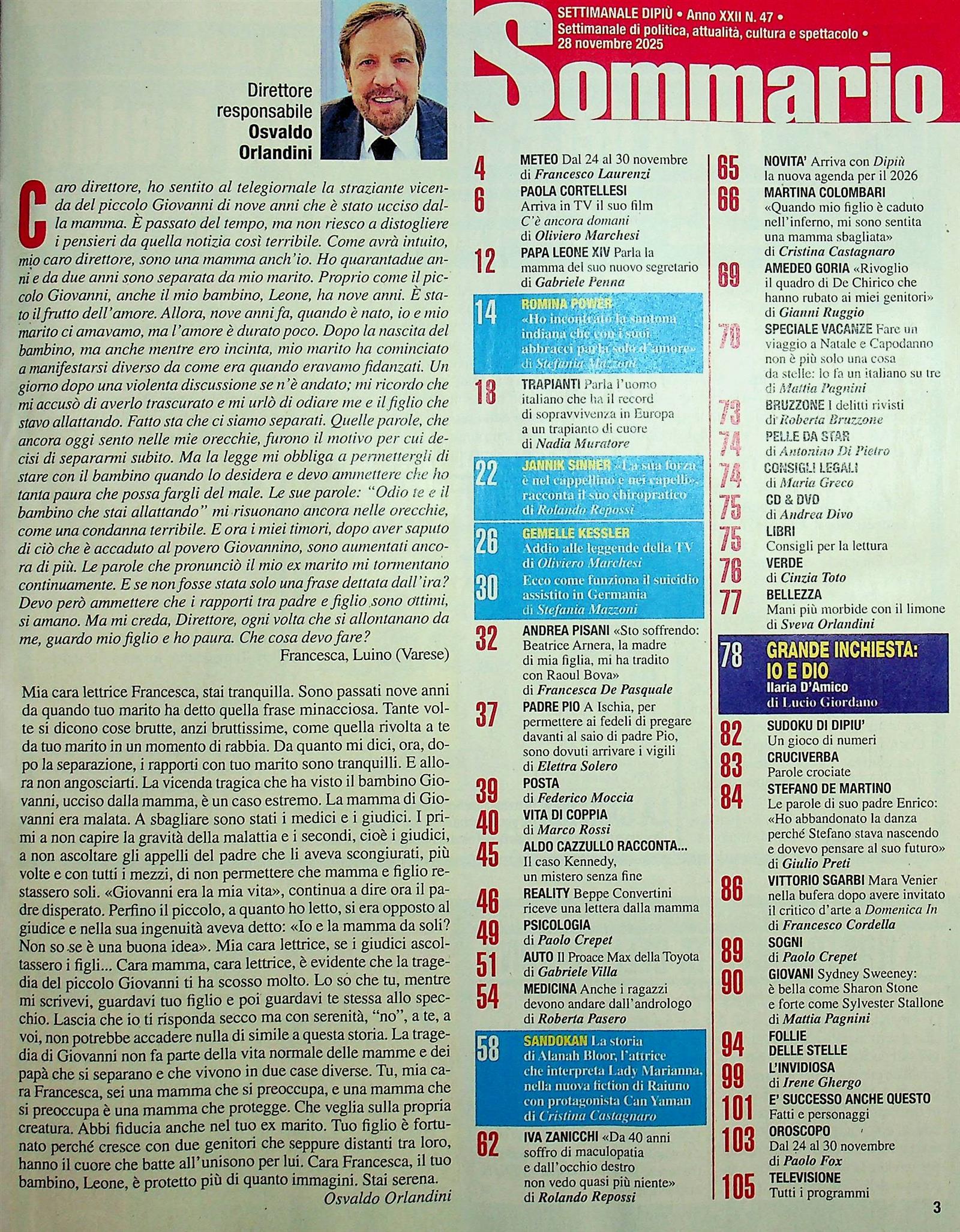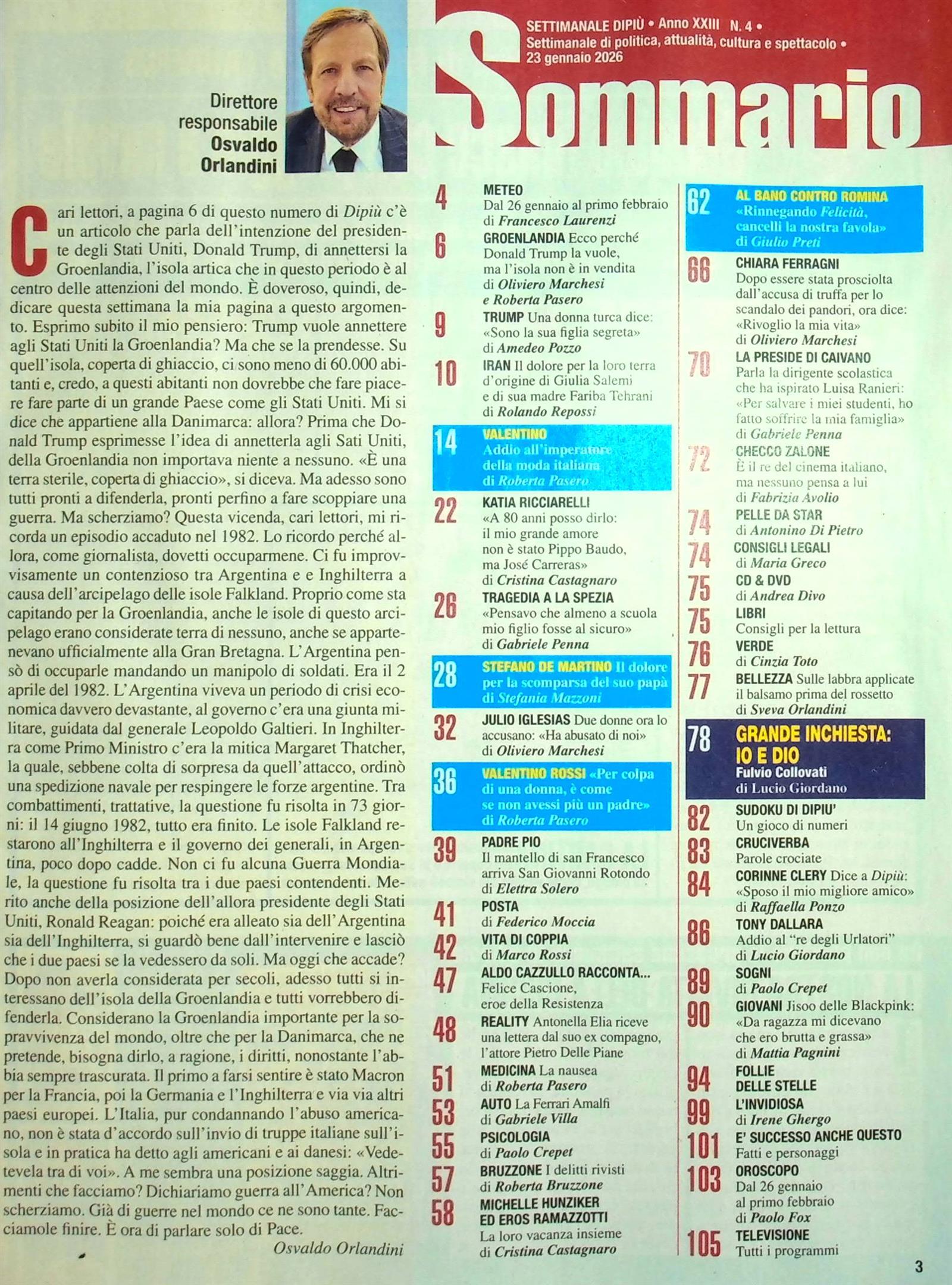 Die DI PIÙ ist das Magazin für Leser, die sich für aktuelle Ereignisse aus dem Bereich der Unterhaltung und Lifestyle interessieren.