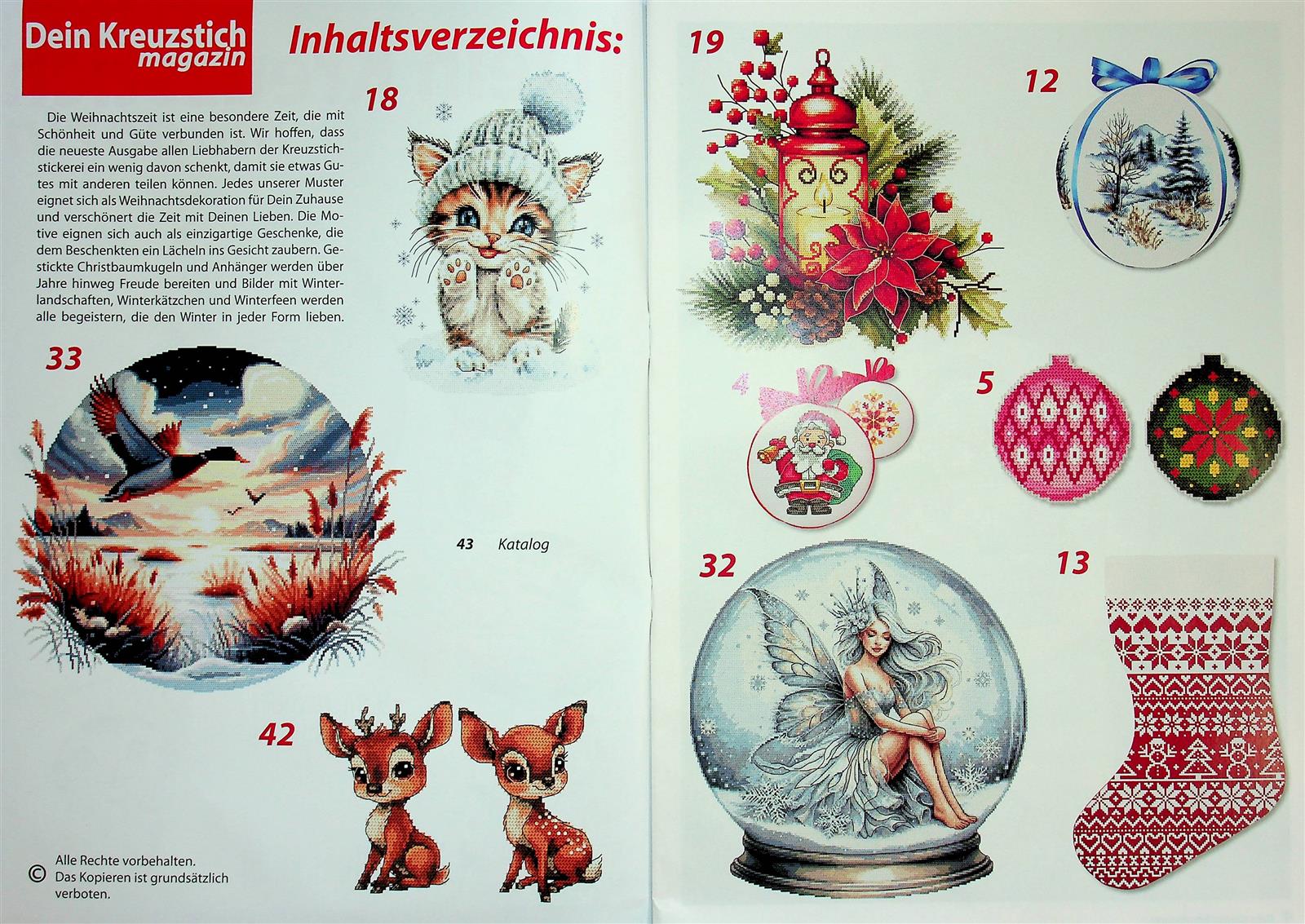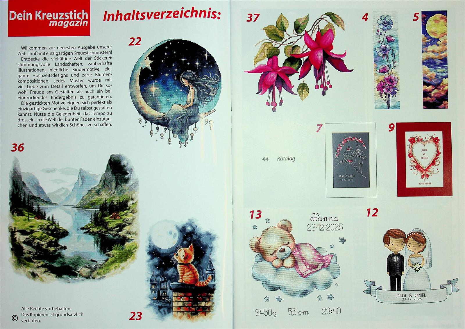 Ein Magazin ein Thema Dein Kreuzstich-Magazin ist der große Ideenratgeber bei der Auswahl für das nächste Kreuzstich-DIY-Projekt. Die Motivauswahl in Kombination mit unterschiedlichen Formaten, von der Grußkarte bis zur Tischdecke, ist bemerkenswert. Die durchgängig 4-farbig bebilderten Seiten regen zusätzlich die Vorstellungskraft an, bis das eigene Kunstwerk vollendet ist.