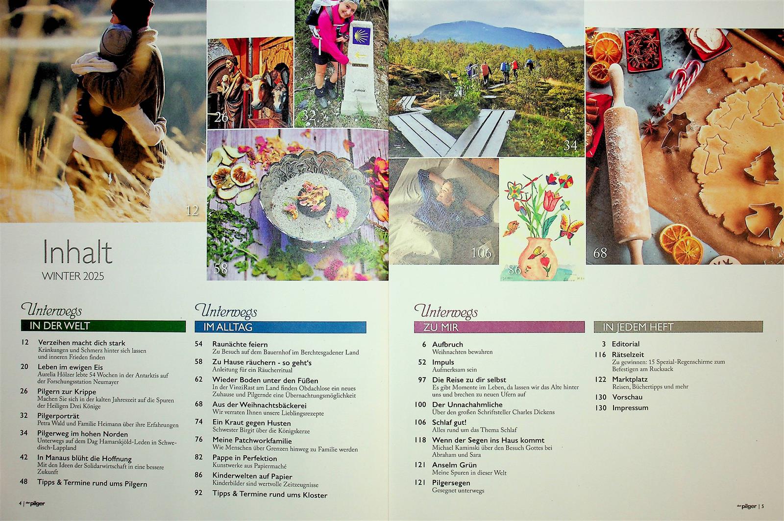 Der Pilger ist die richtige Lektüre für alle, die eine tiefe Sehnsucht nach Ruhe, Einkehr und Sinnfindung in einer schnelllebigen Zeit haben. Das Magazin schlägt Brücken zwischen Tradition und Moderne, bietet Christliches und Spirituelles sowie Impulse für Gesundheit und bewusstes Leben. Das harmonische Layout, die angenehme Bildsprache und die Texte, die das Herz berühren, laden zum Nachdenken, Zurücklehnen und Durchatmen ein.