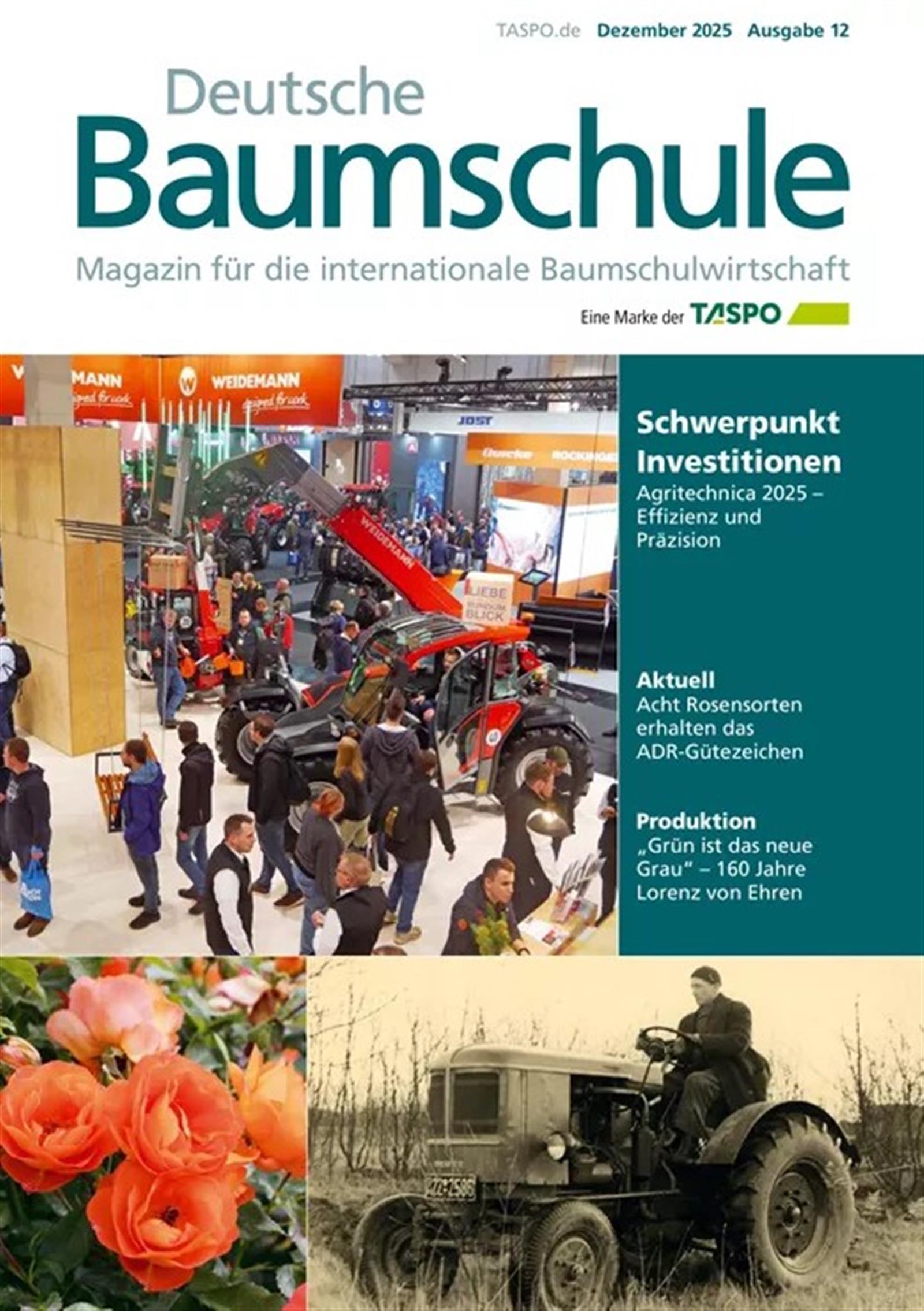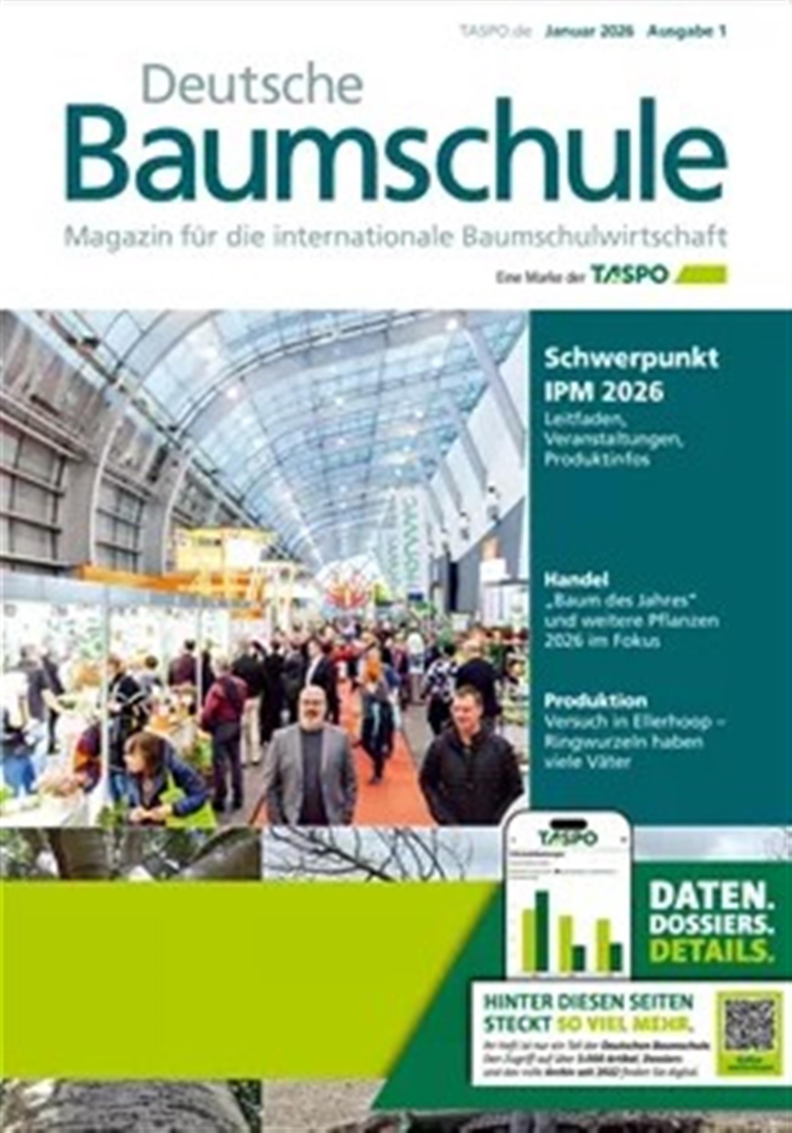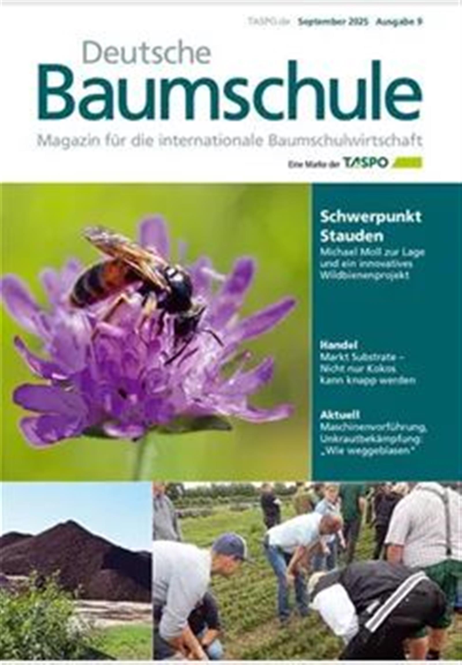 Mit TASPO 360° und der Deutschen Baumschule als Printtitel erhalten Baumschulbetriebe, Staudenproduzenten und Produktionsgärtner Zugang zu praxisnaher, aktueller Fachinformation. Die gedruckte Ausgabe der Deutschen Baumschule ergänzt das digitale Angebot aller sieben Fachmedien um vertiefende Inhalte rund um Produktion, Pflanzenverwendung, Technik und Vermarktung.