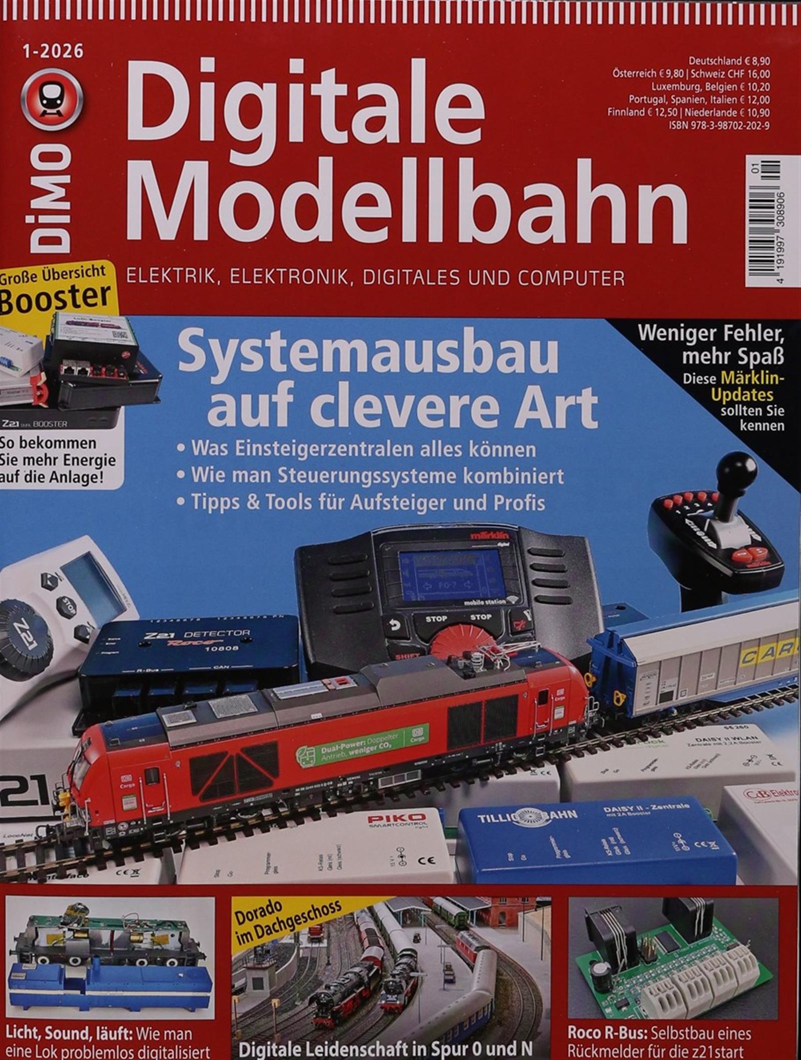 Das Modellbau-Magazin Digitale Modellbahn liefert neben Neuheiten-Vorstellungen und Tests viele Antworten auf die zahlreichen Fragen beim elektrischen Aufbau einer Anlage und beim Betrieb der kleinen Züge. Von der Meldetechnik über Decoder und Softwaresteuerungen bis hin zur Anlagenbeleuchtung ist alles dabei, was für den elektronischen und digitalen Betrieb einer Modellbahnanlage wichtig sein kann.