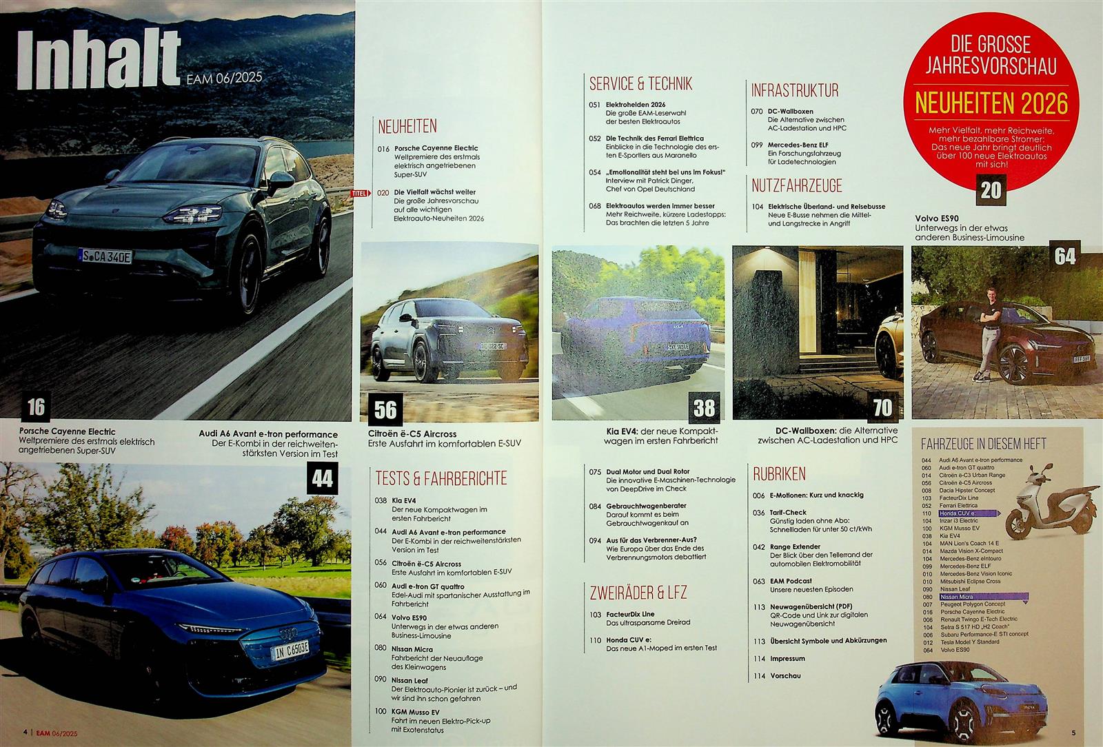 Elektroautomobil bringt in jeder Ausgabe interessante Themen und Berichte über Elektroautos, Hybridfahrzeuge und moderne Mobilität im Allgemeinen. Fahrberichte und Modellvergleiche sind Bestandteil des Magazins, sowie Artikel über Probleme oder Befürchtungen wie Batteriefeuer oder beschränkte Reichweite. Dabei werden neben Autos und Nutzfahrzeugen ebenfalls neue Elektro-Kickboards und Einrad präsentiert.