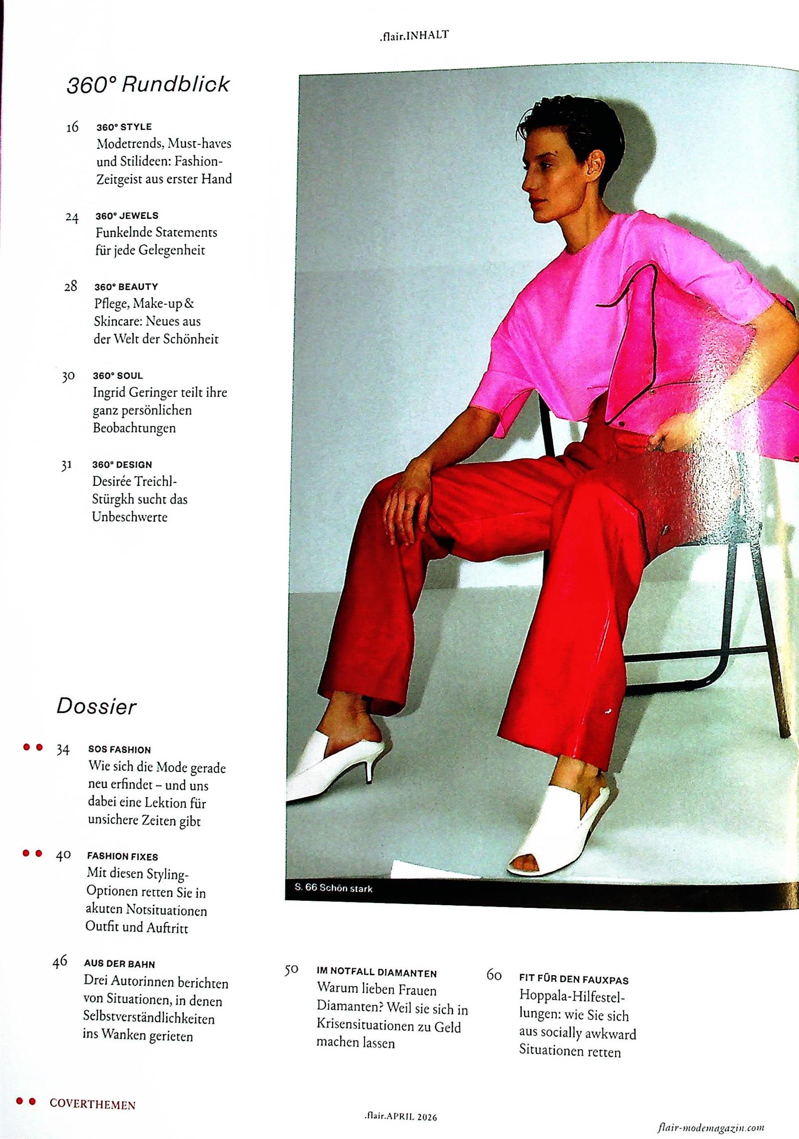 Die Flair findet sich in der Kategorie der Frauenzeitschriften. Eine echte Alternative das Thema Mode betreffend ist natürlich die Vogue. Ein schönes Frauenmagazin aus England ist die Red und Lifestyle mit Anspruch verspricht die Bold.