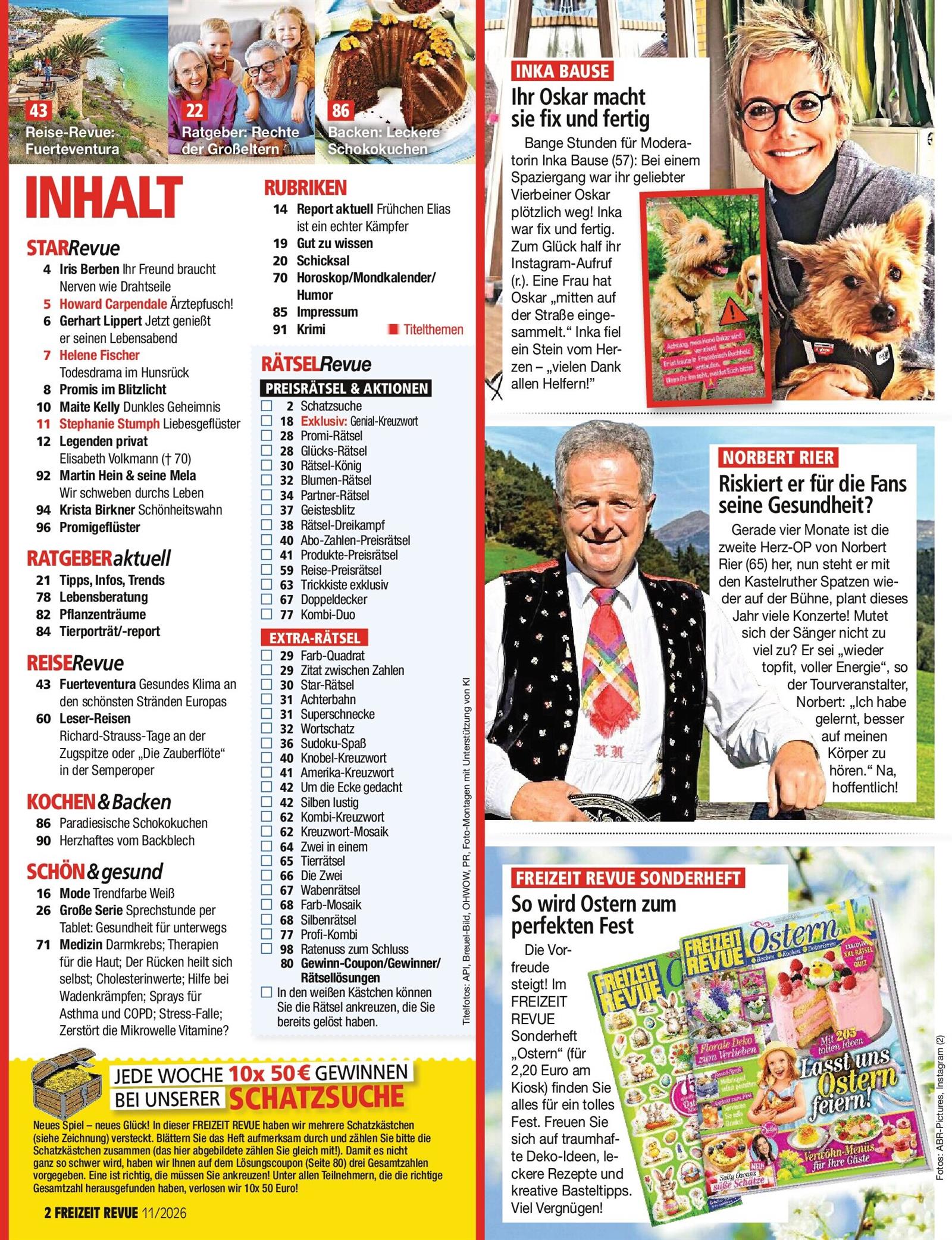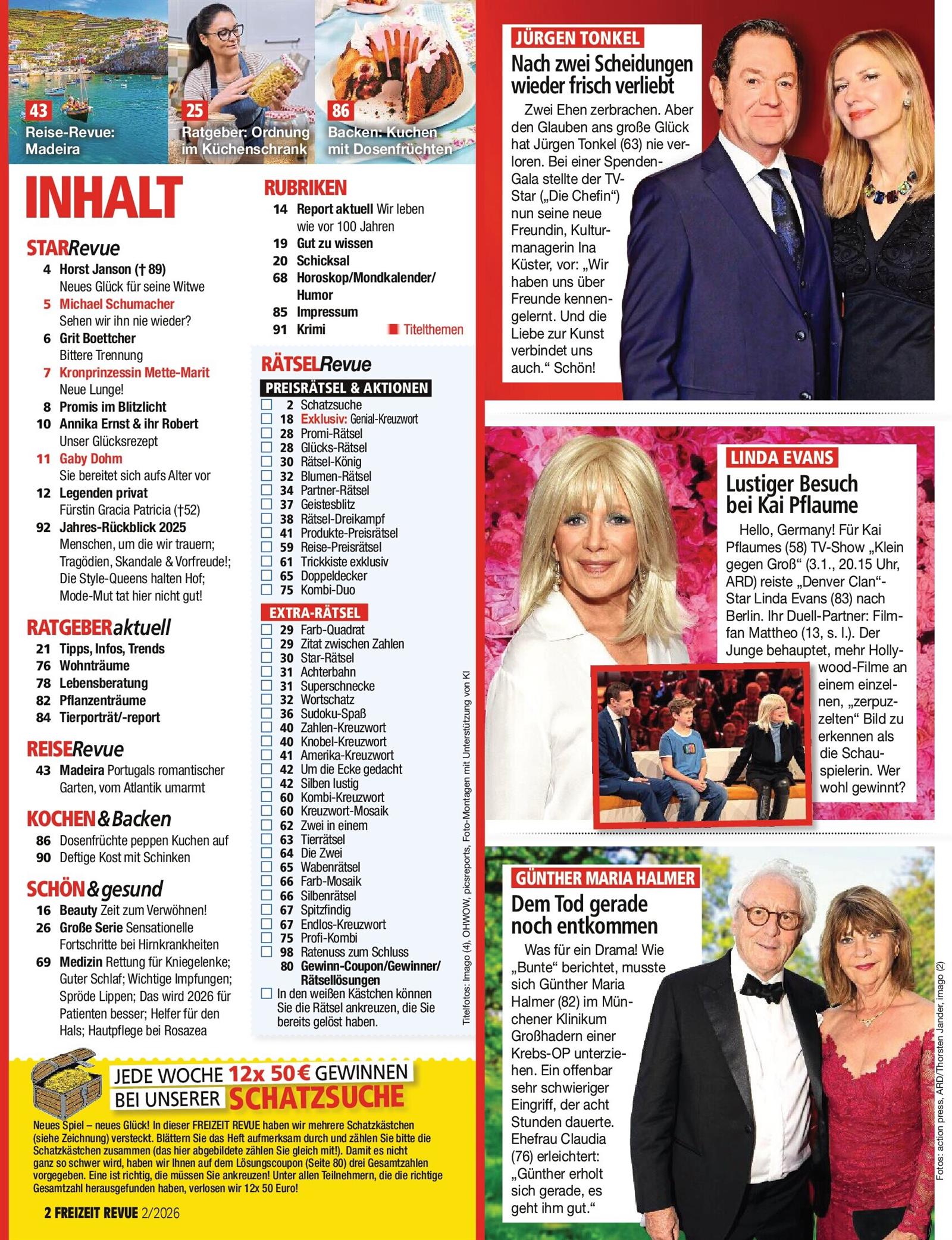 Unterhaltung und praktische Lebenshilfe wird in der Freizeit Revue großgeschrieben. Das Team hinter ihr schnürt Woche für Woche einen bunten Mix aus Reportagen. Service-Artikel und abwechslungsreicher Rätselspaß gehören auch dazu.
