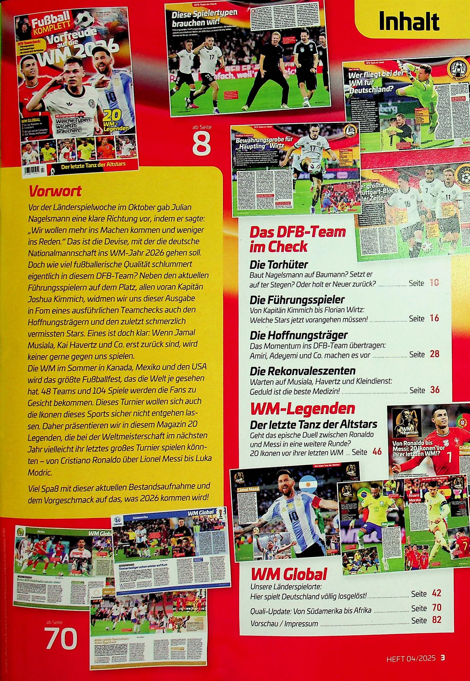 Das Fußball komplett Magazin ist eine führende Sportzeitschrift, die sich ausschließlich dem Thema Fußball widmet. In diesem Magazin finden Fußballfans umfassende Berichterstattungen zu nationalen und internationalen Fußballspielen, Spielergebnissen, Spielanalysen, Interviews mit Spielern und Trainer sowie exklusive Hintergrundgeschichten.