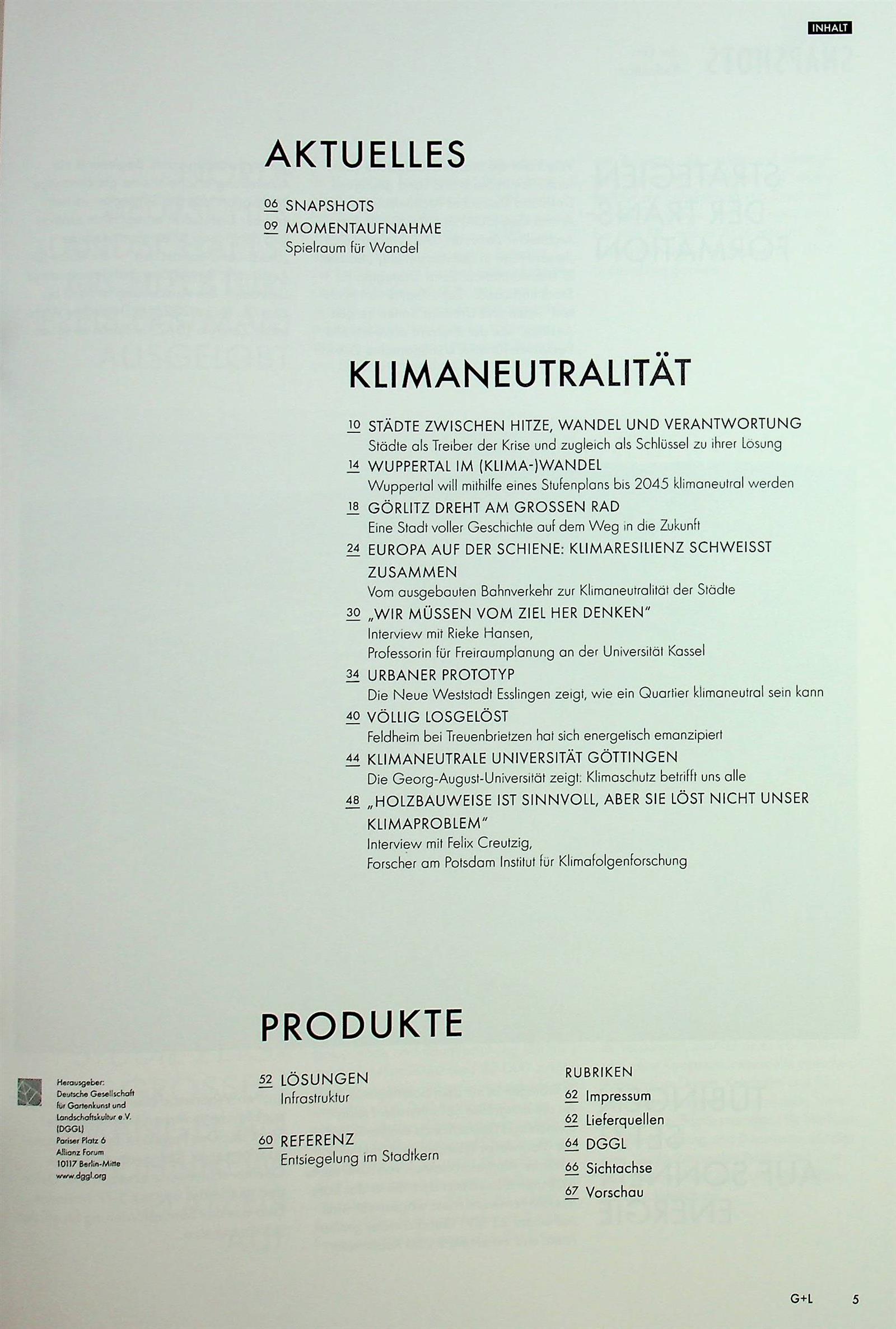 Garten & Landschaft ist die führende Fachzeitschrift für Landschaftsarchitektur im deutschsprachigen Raum. Das Magazin vermittelt den Wert und die Bedeutung herausragender Landsschaftsarchitektur und inszeniert relevante Projekte und Produkte als Highlights. Aktuelle Trends und Tendenzen werden kritisch begleitet und zusätzlich online aufgegriffen bzw. weitergeführt.