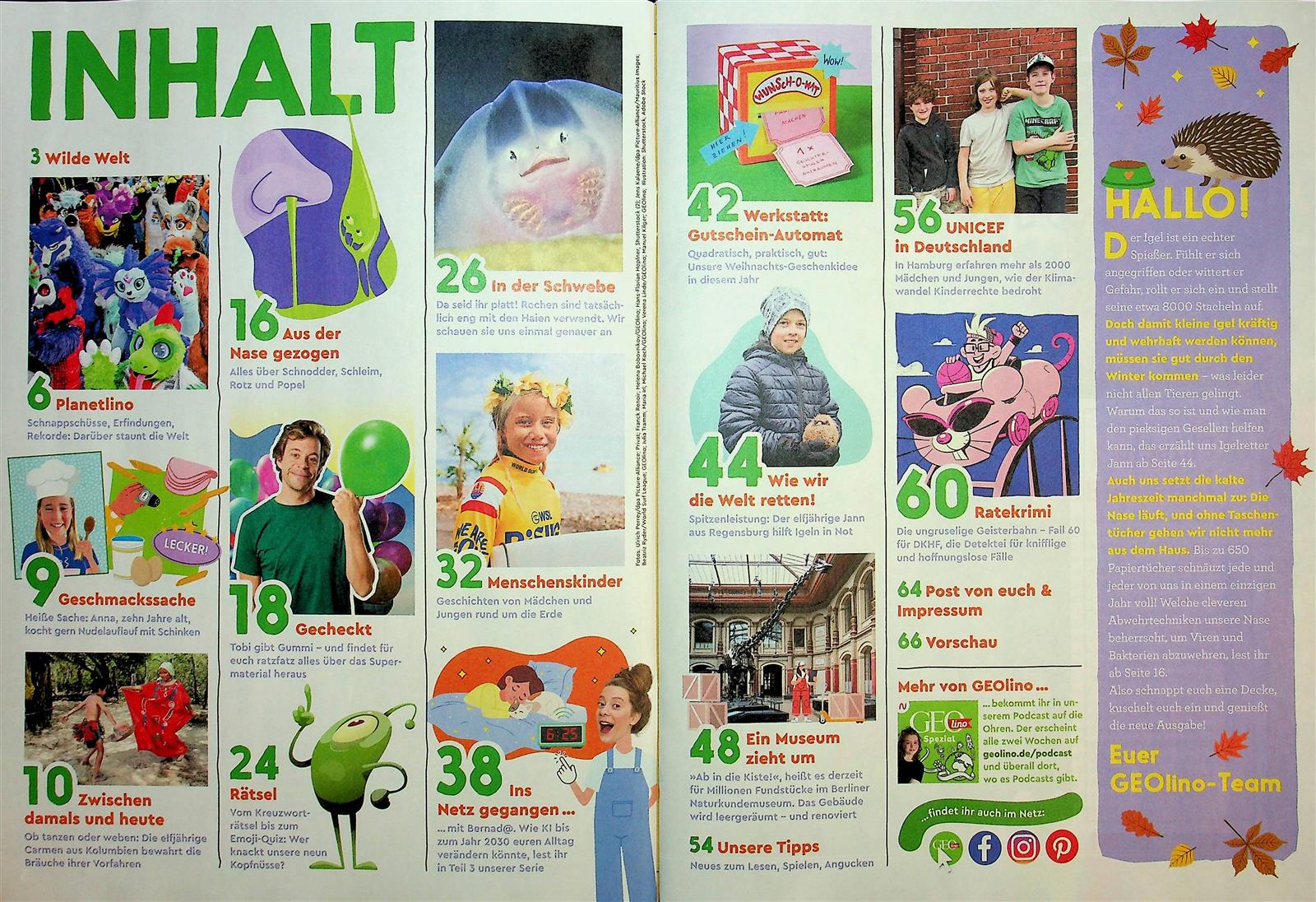 GEOlino, inspiriert von dem beliebtesten Magazine GEO, ist ein lebendiges und charmantes Kinderzeitschrift, das komplexe Themen der Welt kindgerecht und unterhaltsam aufbereitet. Sie legt Wert auf eine sympathisch-spielerische Umsetzung von Wissensthemen zu kindlichen Lebenswelten. GEOlino vermeidet dabei einen lehrbuchhaften Ansatz; stattdessen werden kleine, annotierte Bilder und bunte Illustrationen neben kurzen, verständlichen Artikeln verwendet, um einen einladenden Rahmen zu schaffen. Diese Methode zieht Kinder in eine Entdeckungsreise mit ein, fördert ihre Neugier und ihren Wissensdurst und unterstützt sie darin, ein tieferes Verständnis für Menschen, Tiere und die Umwelt zu entwickeln. Ergänzt wird dies durch spielerische Elemente wie Bastelwettbewerbe zu Natur- und Umweltthemen, die nicht nur Interesse wecken, sondern auch aktiv einbeziehen und somit Wissen und Werte mit Freude vermitteln.