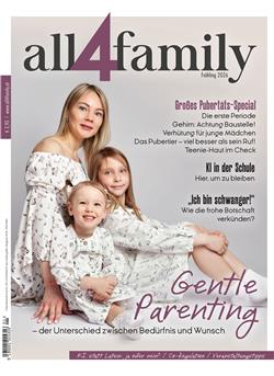Aus Österreich kommen die Familienmagazine New Mom + all4family, die in einem gemeinsamen Abo erscheinen, das ideal für junge und frischgebackene Eltern ist. Die Zeitschrift Cool Dad erscheint zudem als Beilage der all4family. In diesem Abo steckt also geballtes Elternwissen mit vielen Praxistipps, wertvollen Infos für die Schwangerschaft und Kinder im Kleinkindalter. New Mom + all4family richten sich in erster Linie an Mütter mit Kinder im Alter von 0 bis 12 Jahren.