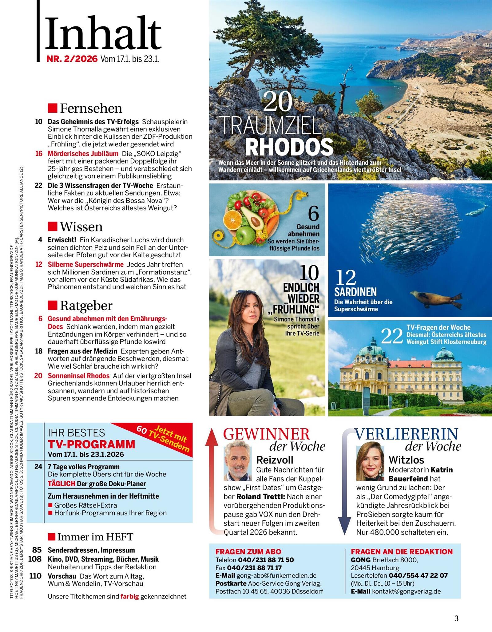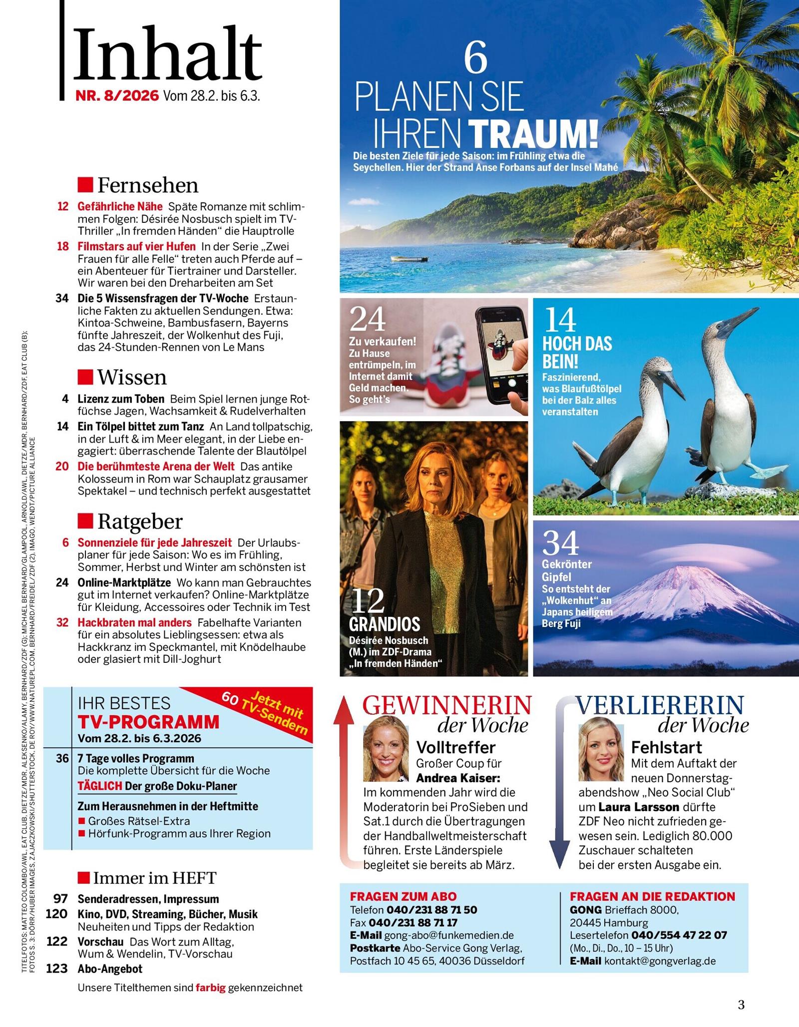 Der Gong ist für mich die beste Fernsehzeitung sehr Übersichtlich gute Themen und Kreuzworträtsel alles was eine Zeitschrift braucht.Ich kann sie nur empfehlen.