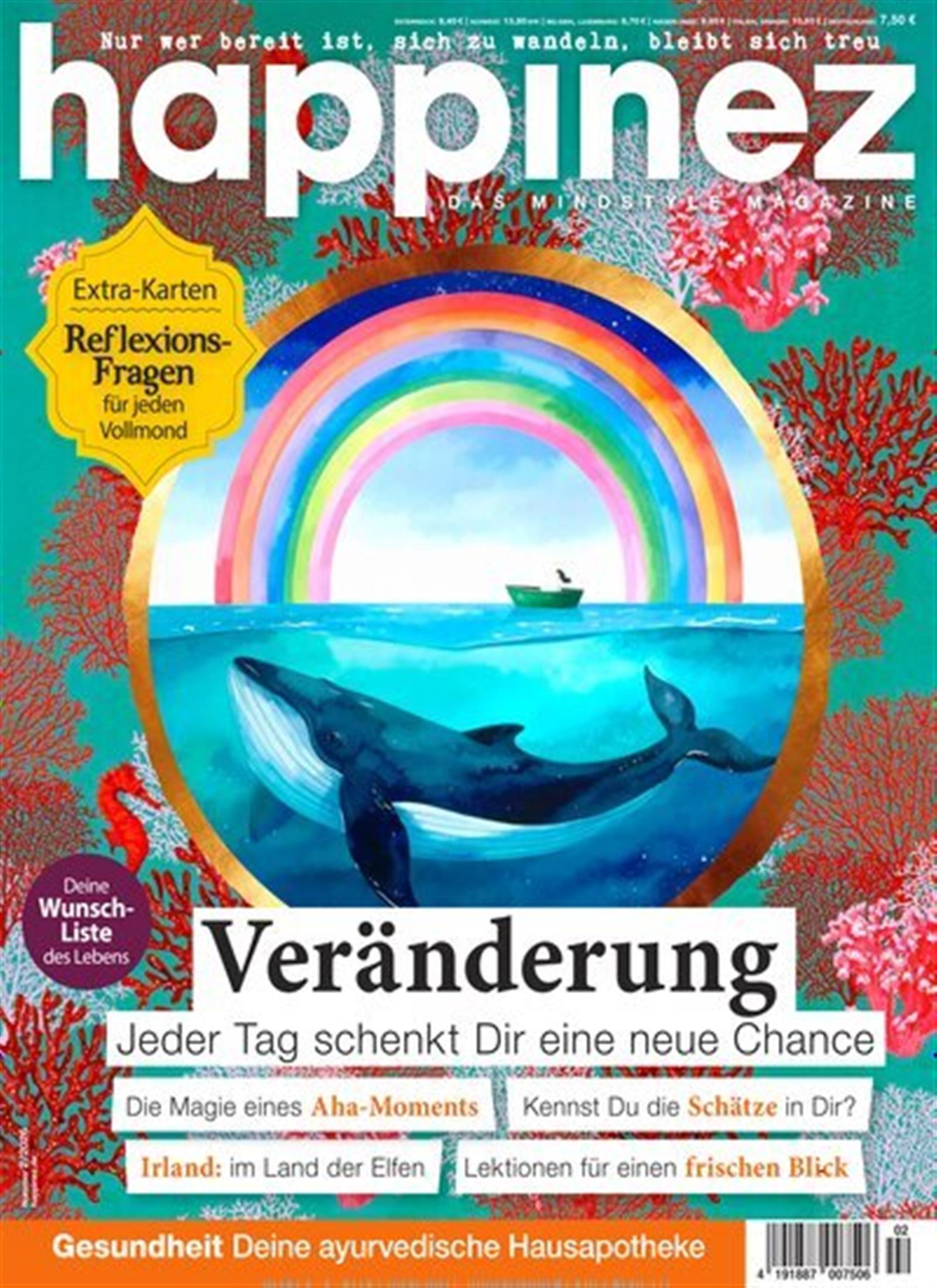Gute Zeitschrift. Hab schon viel drin gefunden, was so auch in Mediations Zeitschriften steht. Happinez ist von den Themen her breit aufgestellt, kommt etwas leichter daher als Fachzeitschriften und man kann sie daher gut verschenken, ohne dass man als "Bekehrer" rüberkommt. Unsere Bibliothek hat sie und ich freue mich auf jedes Heft. Hab sie jetzt auch einer lieben Freundin geschenkt.