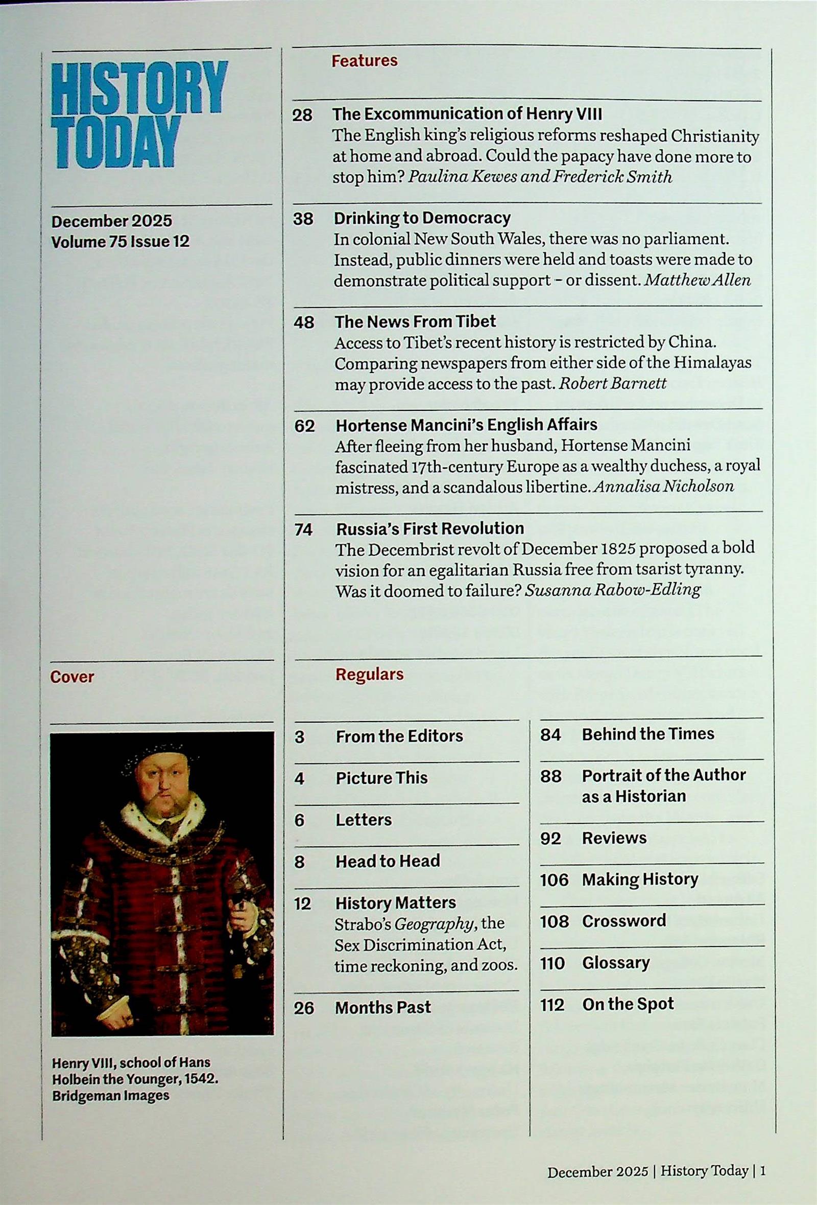 History Today deckt alle Epochen und geographischen Regionen ab. Dadurch findet sich für jeden Interessenten eine Ausgabe, die den Leser/die Leserin besonders anspricht. Das Magazin ist hochwertig aufbereitet und für ein breites Publikum geschrieben.