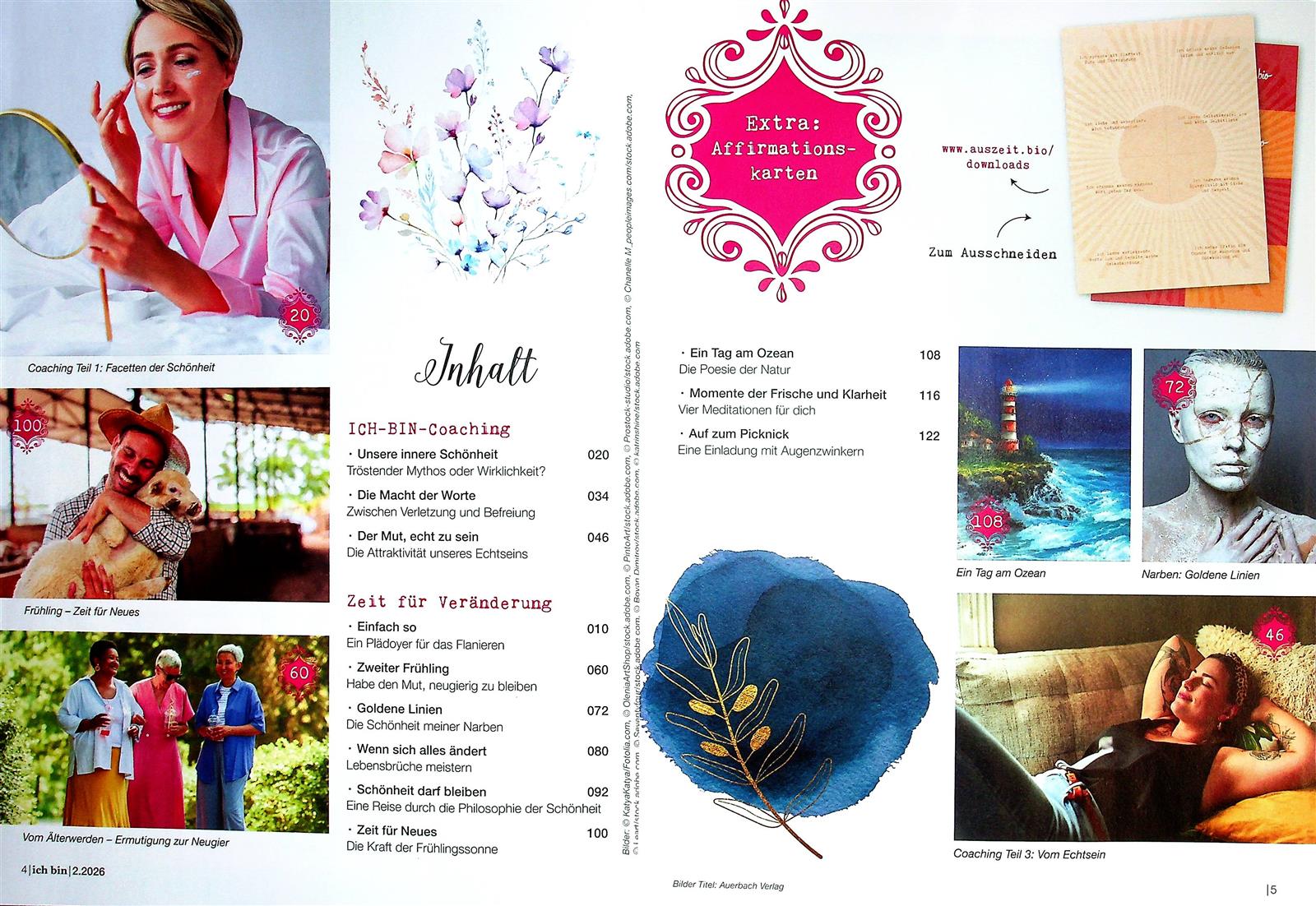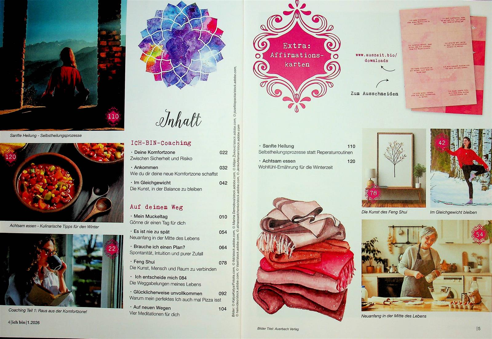 Die Zeitschrift Ich bin bietet eine Vielzahl von inspirierenden und informativen Inhalten, die sich auf persönliche Entwicklung, Wellness und Lebensfreude konzentrieren. Leser finden Artikel zu Themen wie Achtsamkeit, Selbstliebe und gesunde Lebensführung. Darüber hinaus werden Interviews mit Experten und Erfahrungsberichte von Menschen präsentiert, die ihren Weg zur Selbstverwirklichung gefunden haben. Kreative Workshops und praktische Tipps zur Stressbewältigung fördern eine positive Lebensweise. Die Zeitschrift legt besonderen Wert auf die Förderung von Gemeinschaft und Austausch, indem sie Leser ermutigt, ihre eigenen Geschichten zu teilen. So entsteht ein Raum für Inspiration und persönliche Entfaltung, der den Leser auf seinem individuellen Lebensweg begleitet.