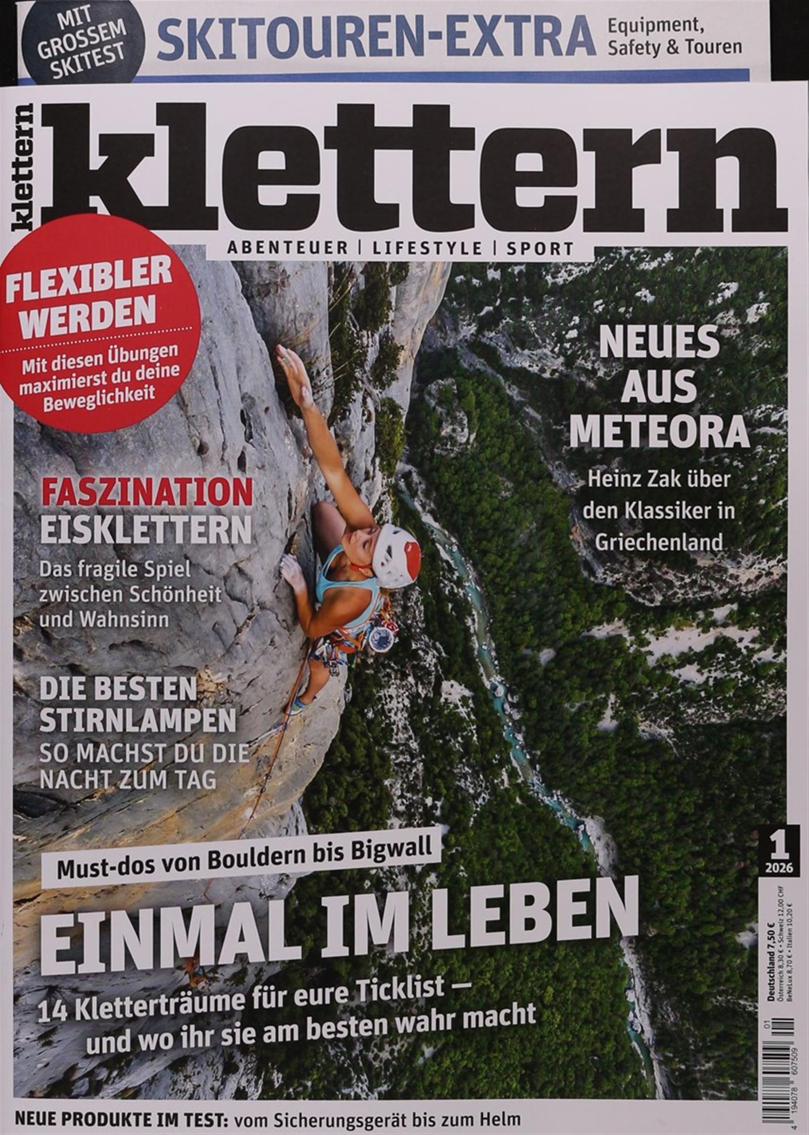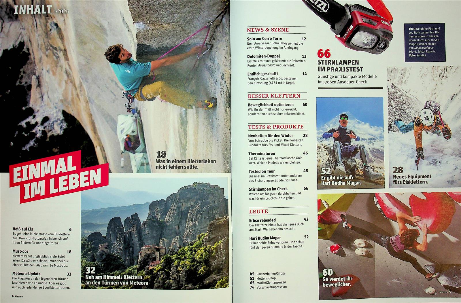Klettern ist ein echtes Szenemagazin und wendet sich dabei sämtlichen Aspekten des Kletter– und Bergsports zu.