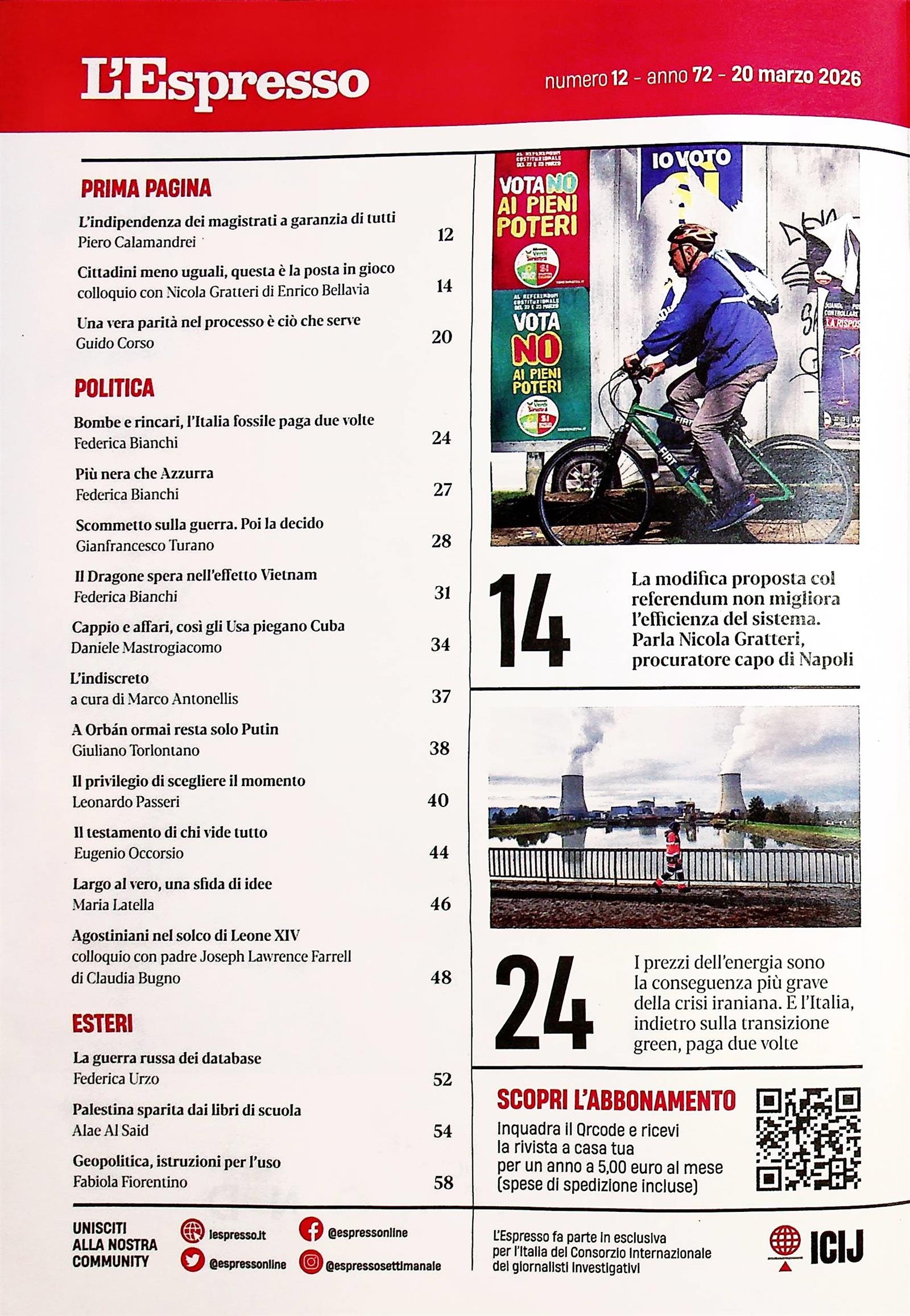In Ausgabe 011/2026 von L'Espresso