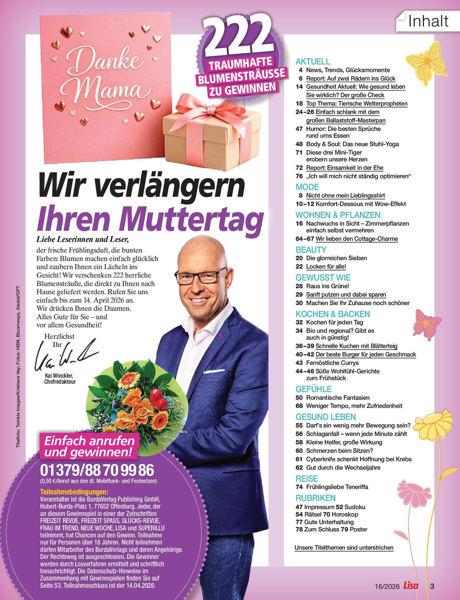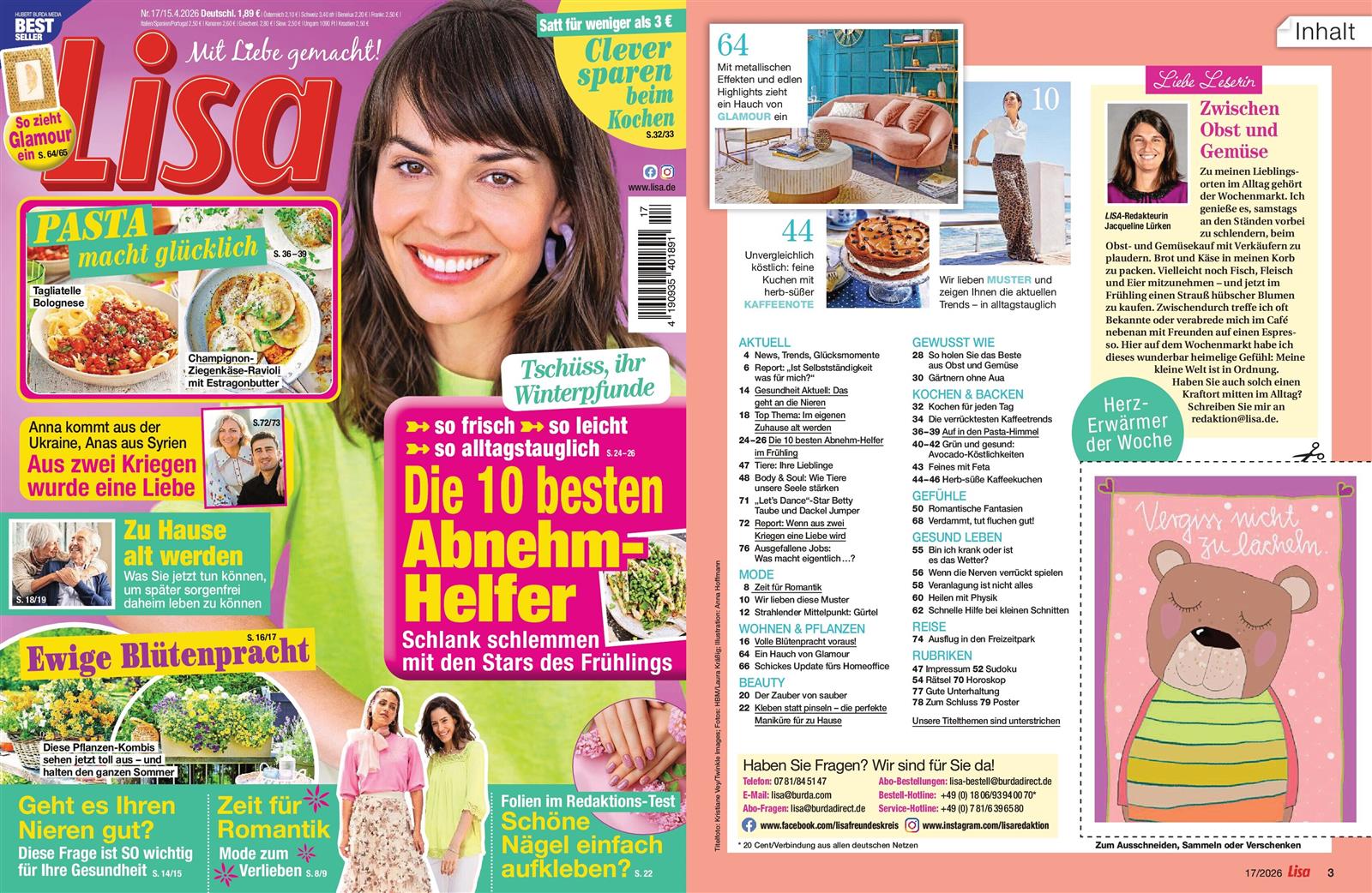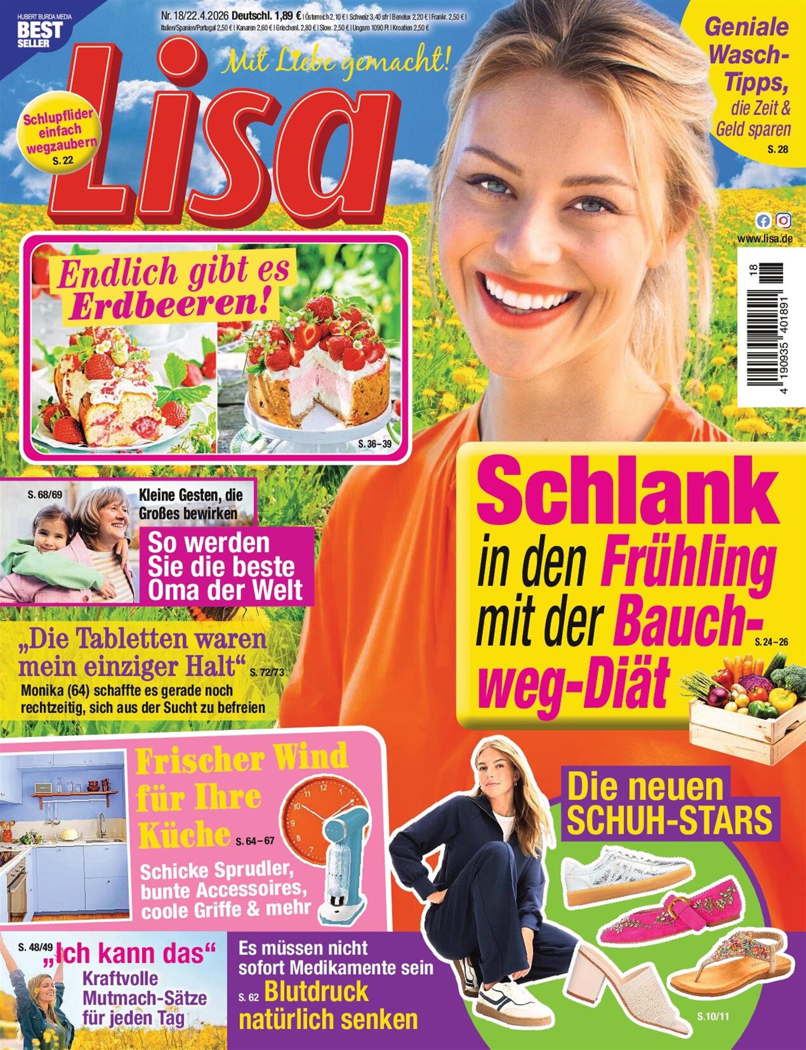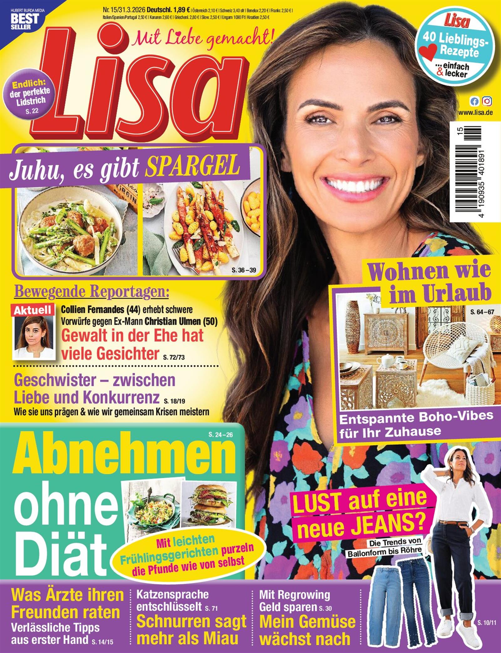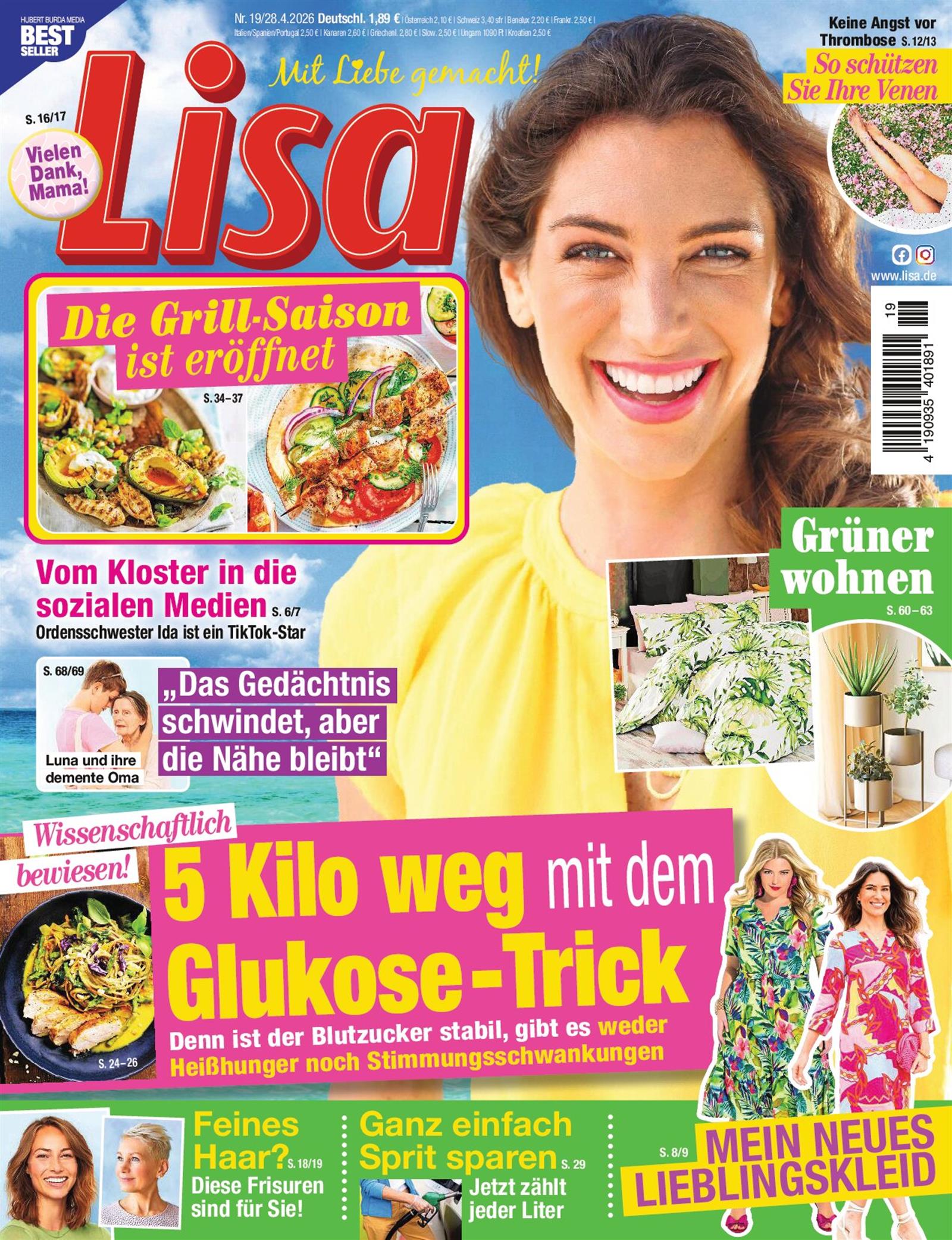 Ich bin enttäuscht, die Lisa fande ich einmal interessanter. Als "im Leben stehende Frau" muss ich nicht lesen, das ich eine Laufmache mit Nagellack stoppen kann oder muss wissen wie hoch mein Sex IQ ist. Die Rezepte sprechen macht nicht an. Schade.