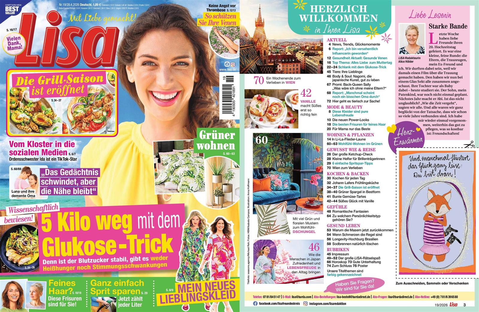 Die Zeitschrift Lisa ist sehr intersant und es stehen viele schöne Rezepte und vieles zu lesen drin was mich sehr intresiert, ich kann die Zeitschrift Lisa weiter empfehlen. Mit freundlichen GrüßenSandra Gomoll
