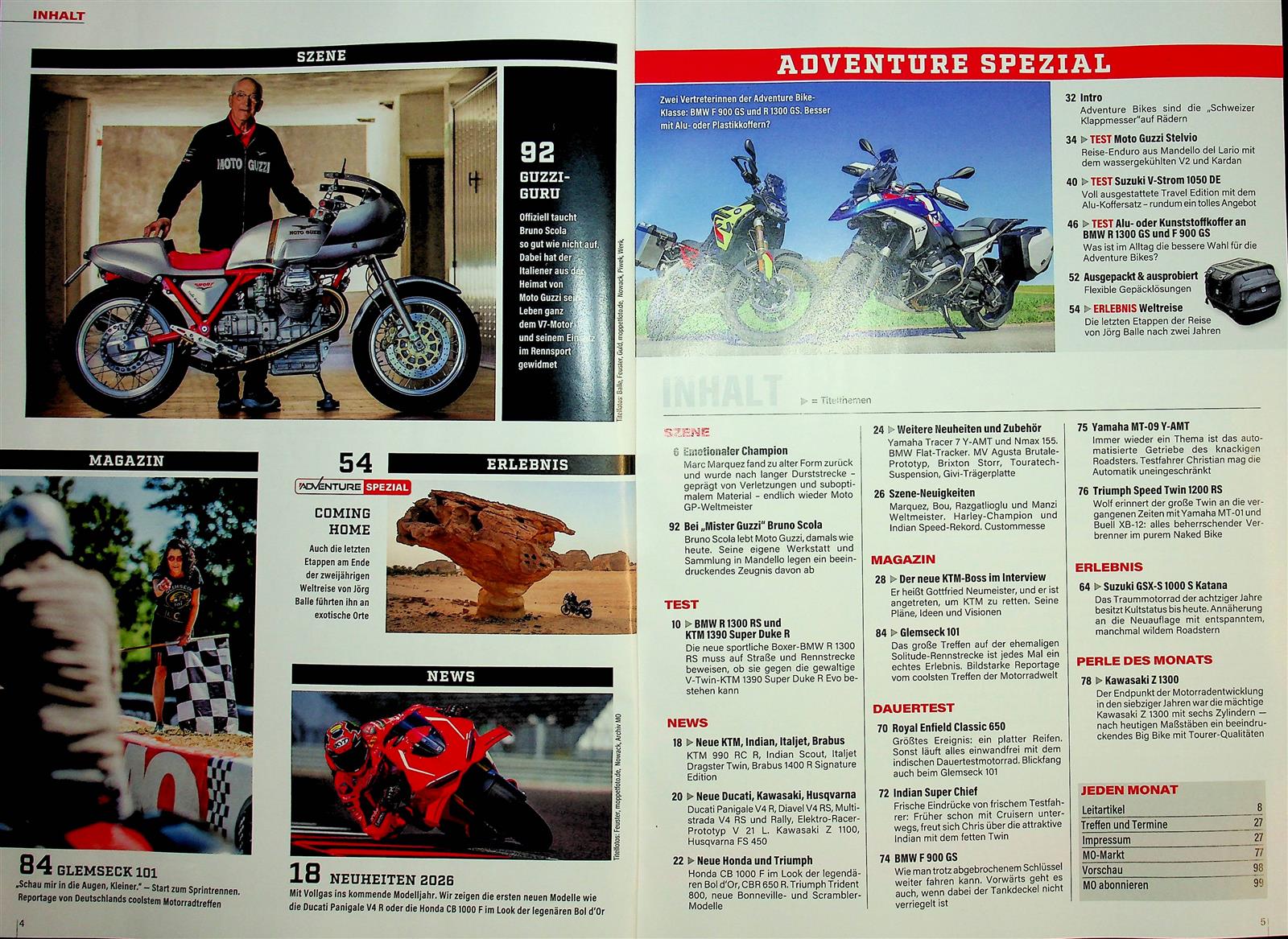 Die Tests der Moto Guzzi Stelvio und der Suzuki V‑Strom 1050 DE zeigen, wie moderne Reise-Enduros Alltag, Fernfahrt und Offroad kombinieren. Zudem gibt’s einen Vergleich von Alu- gegen Kunststoffkoffern an zwei GS-Modellen