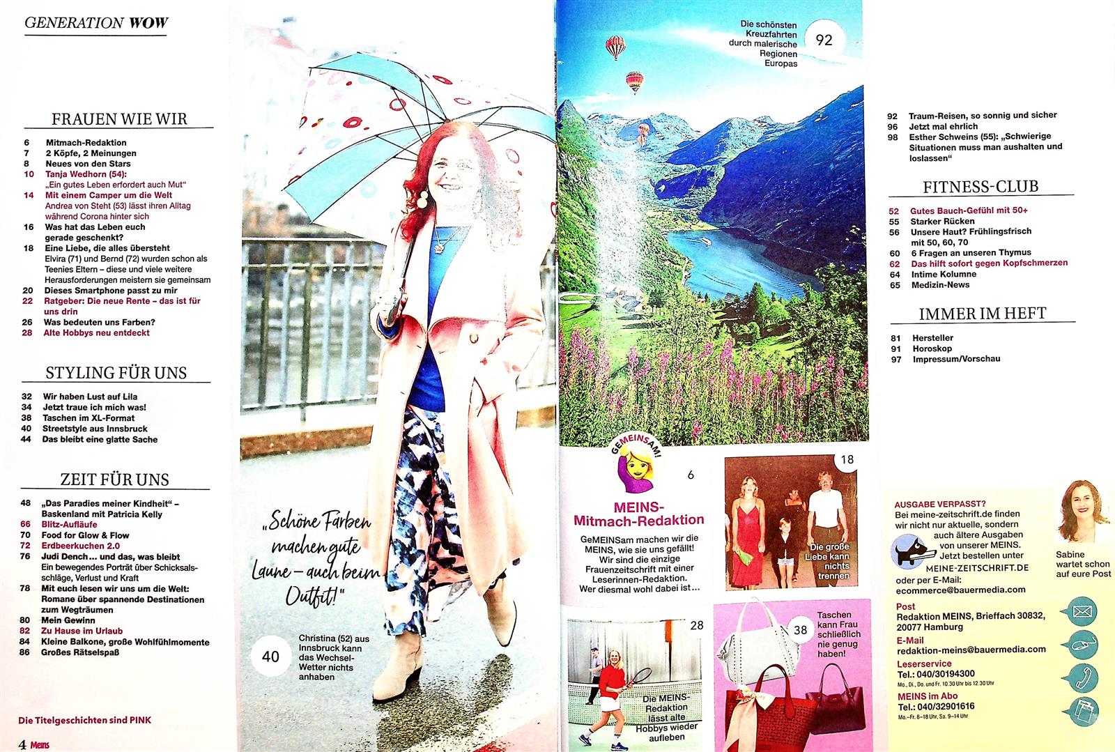 Die Zeitschrift bietet inhaltlich eine gute Mischung aus Information zu Frauenthemen, Klatsch/Tratsch sowie Tipps und Rezepten für/gegen Vielerlei. Rätsel kann man außerdem lösen. Informativ, entspannend und unterhaltend. Für die Zielgruppe, Frauen über 50, gut zu lesen.
