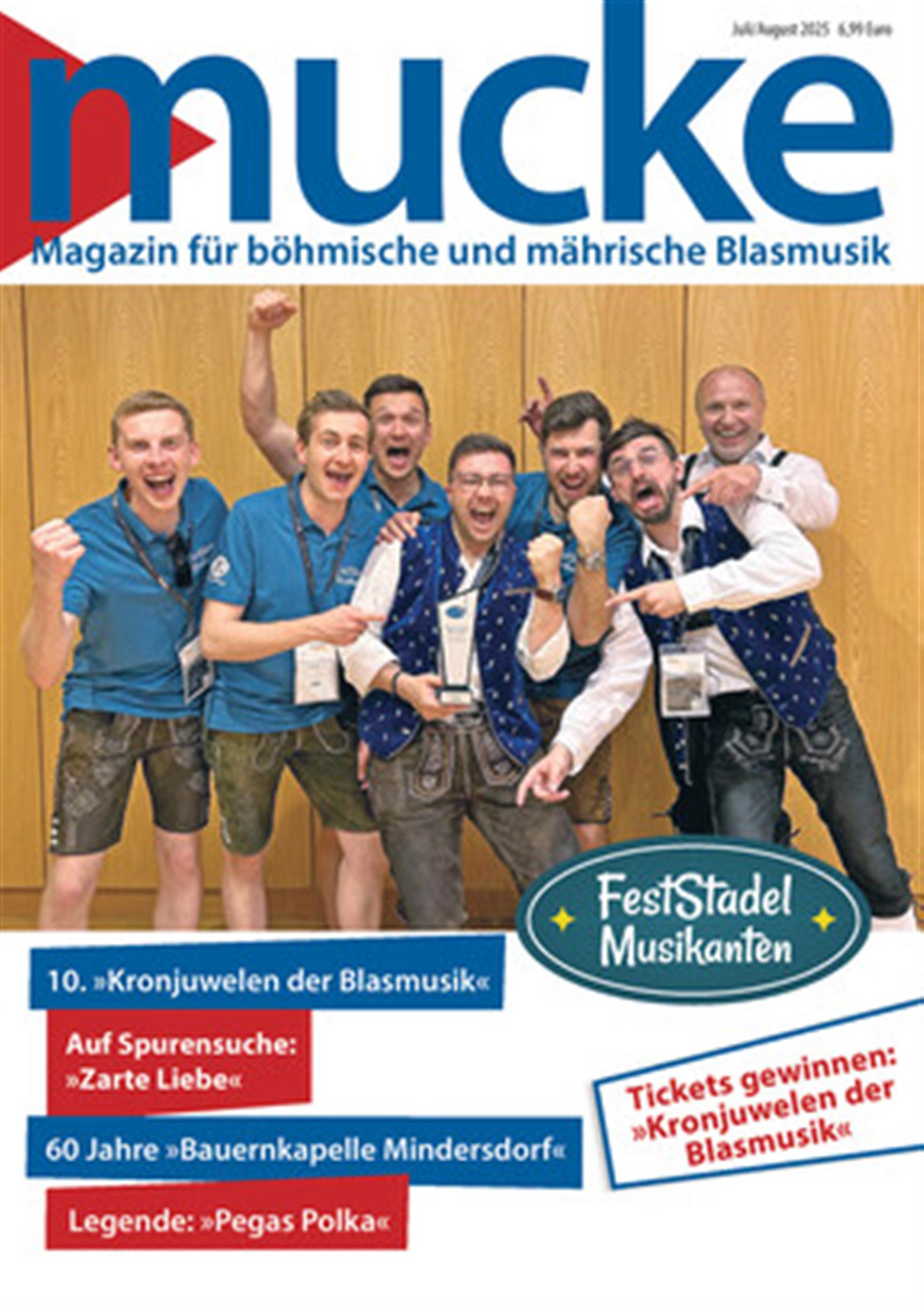 Mucke ist das Magazin für böhmische und mährische Blasmusik, mit dem die Leserinnen und Leser immer die aktuellen Informationen über die Stars, die Gruppen und die Events der Szene erfahren.