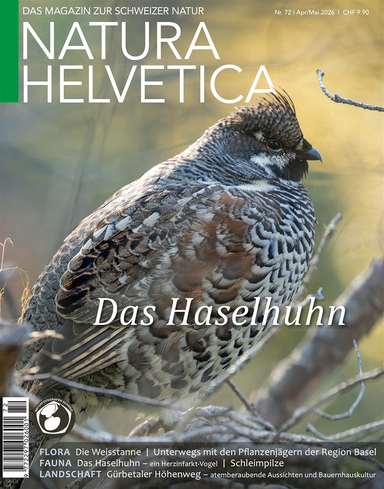 Die hochwertige 52-seitige Zeitschrift Natura Helvetica ist das Schweizer Magazin über einheimische Natur und Tiere und erscheint 6 mal im Jahr.