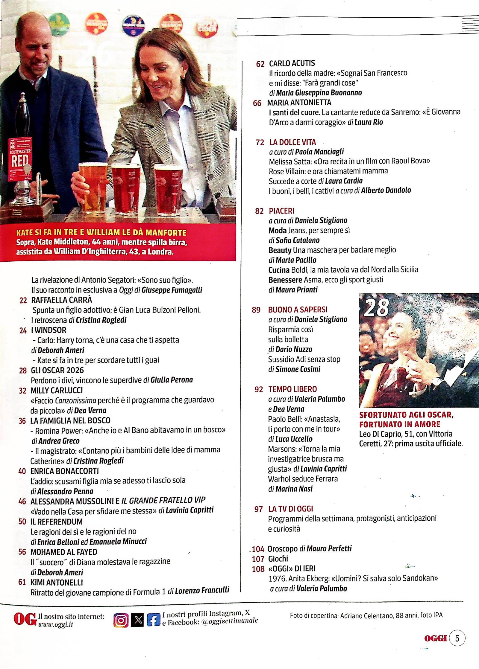 Oggi beinhaltet vielfältige und zahlreiche Artikel über den aktuellen Prominenten- Klatsch & Tratsch und über andere Persönlichkeiten des öffentlichen Lebens.