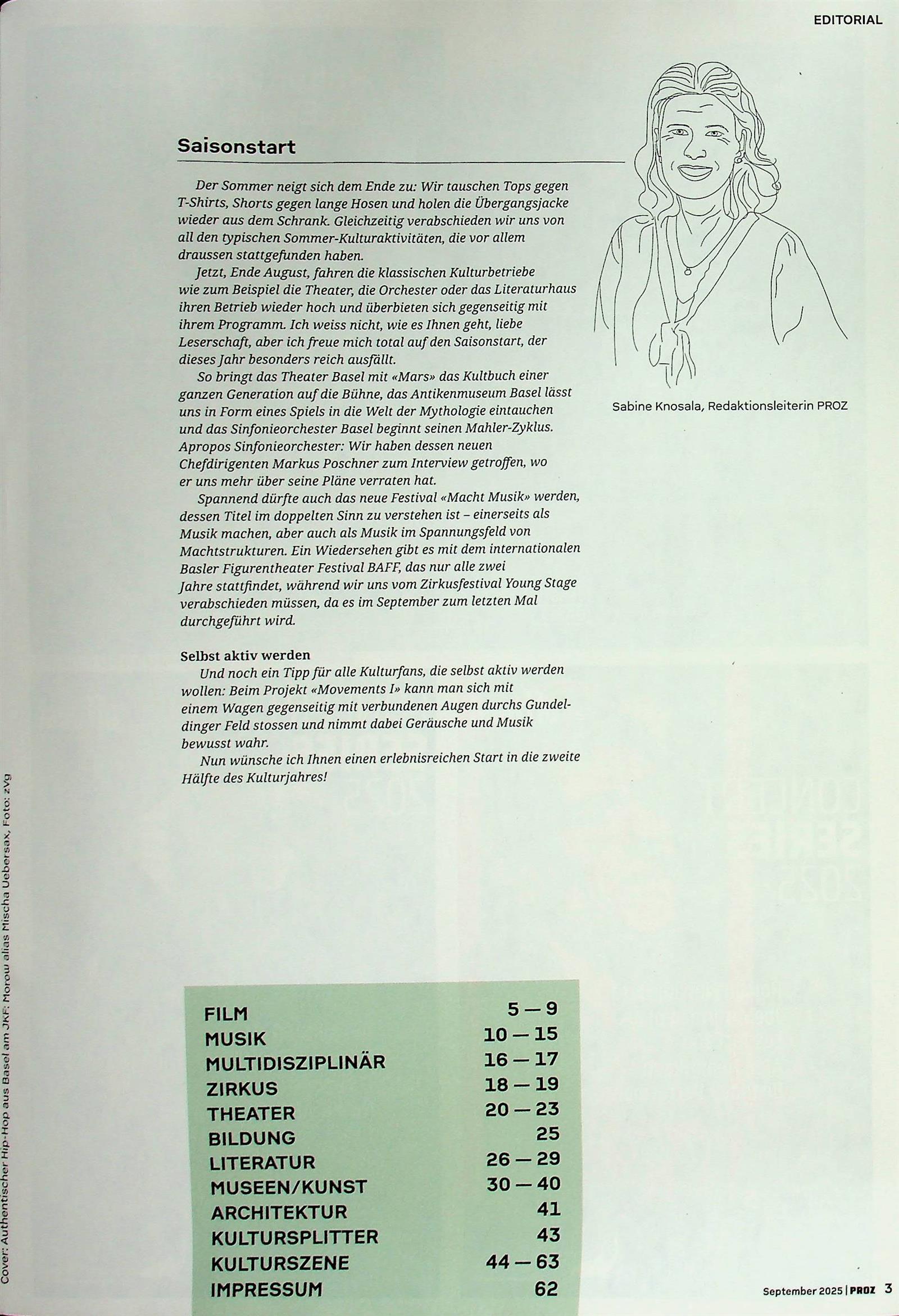 In Ausgabe 009/2025 von PROZ - Kultur im Raum Basel
