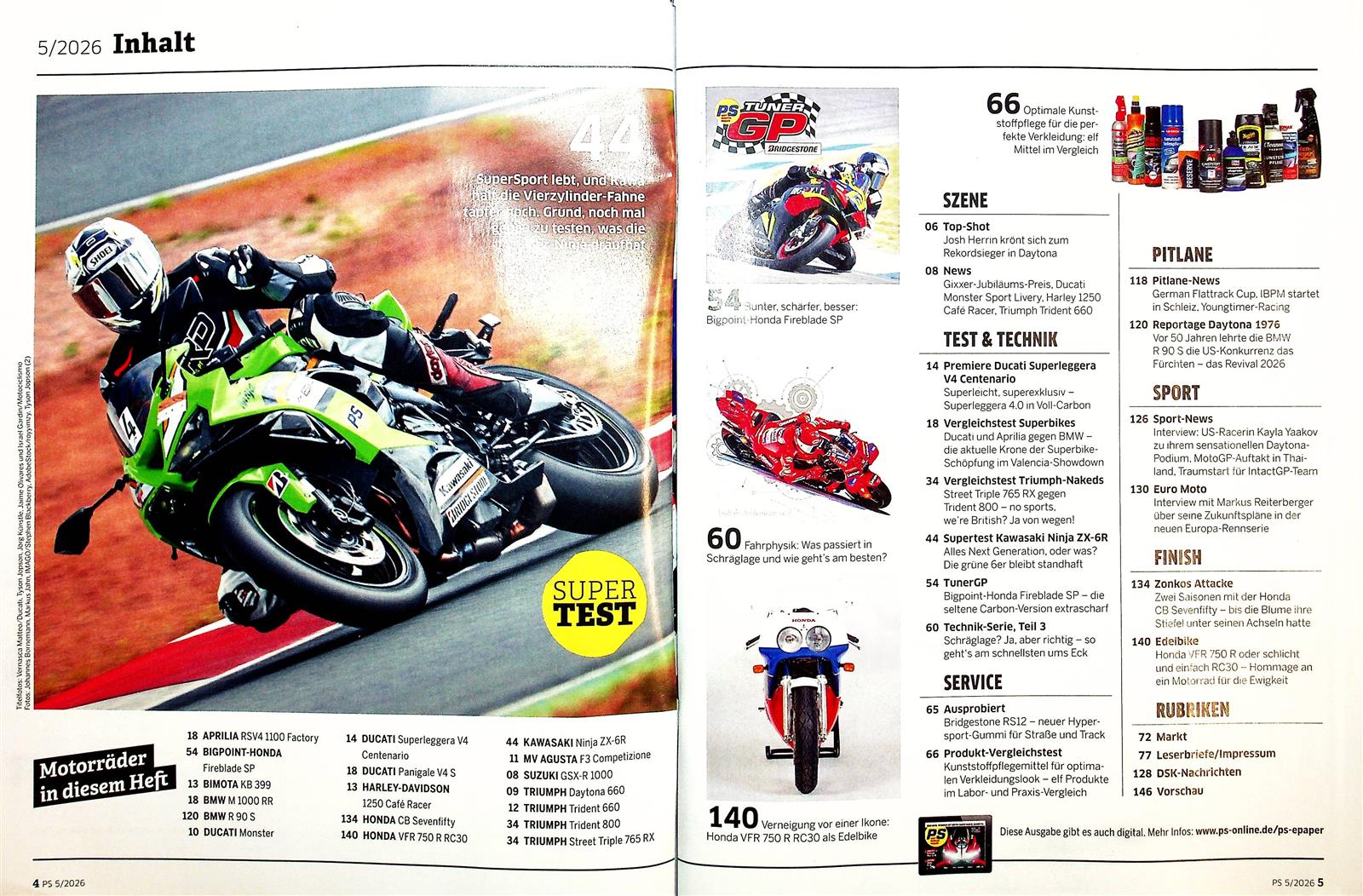 Das Editorial reflektiert die Themen dieser Ausgabe und verbindet technische Gegenwart mit historischem Kontext. Es hebt als Schwerpunkte den Superbike-Vergleich, Ducatis 100-jähriges Jubiläum mit der Superleggera und ein Revival alter Boxer-BMWs hervor. Der Autor kritisiert gleichzeitig die zunehmende Entfernung der Top-Modelle vom normalen Käuferbudget. Außerdem informiert die Redaktion über einen organisatorischen Führungswechsel im Abonnementservice. Für Leser liefert das Editorial Orientierung, welche Beiträge besonders relevant sind und warum sich ein Blick auf Technik sowie Tradition lohnt.