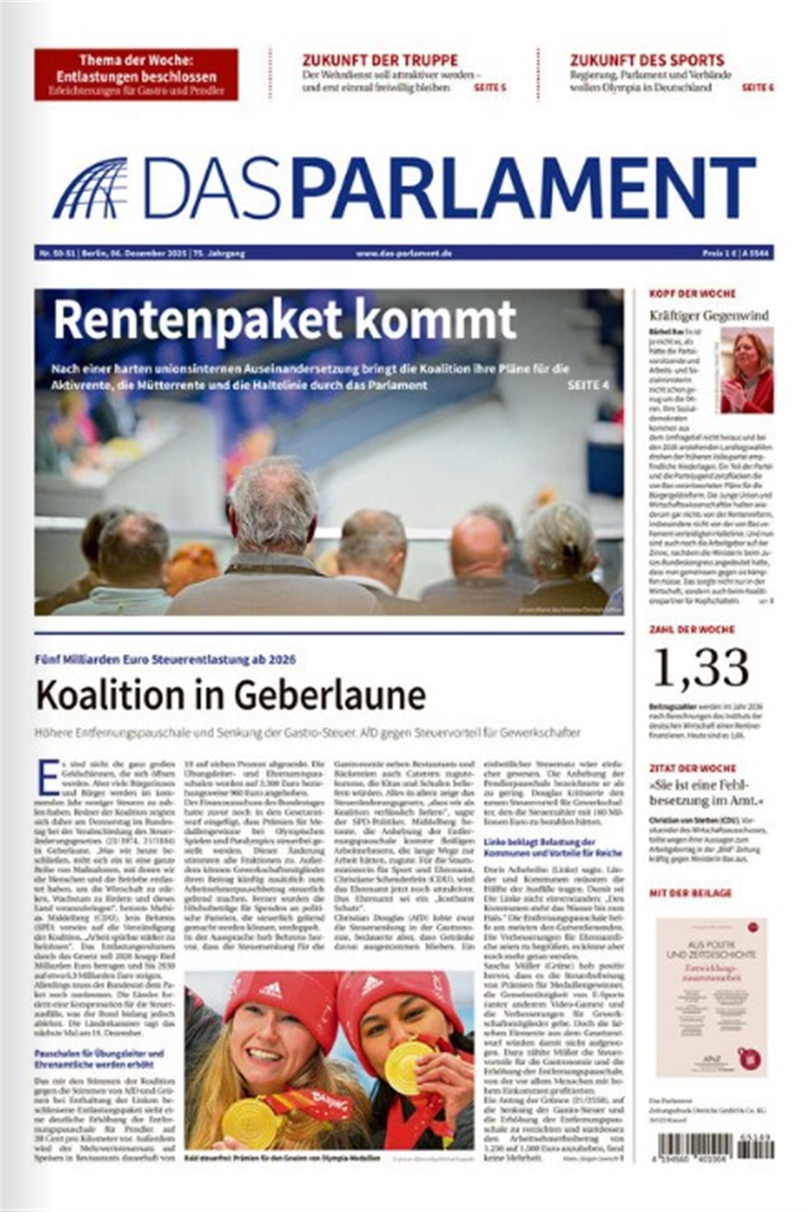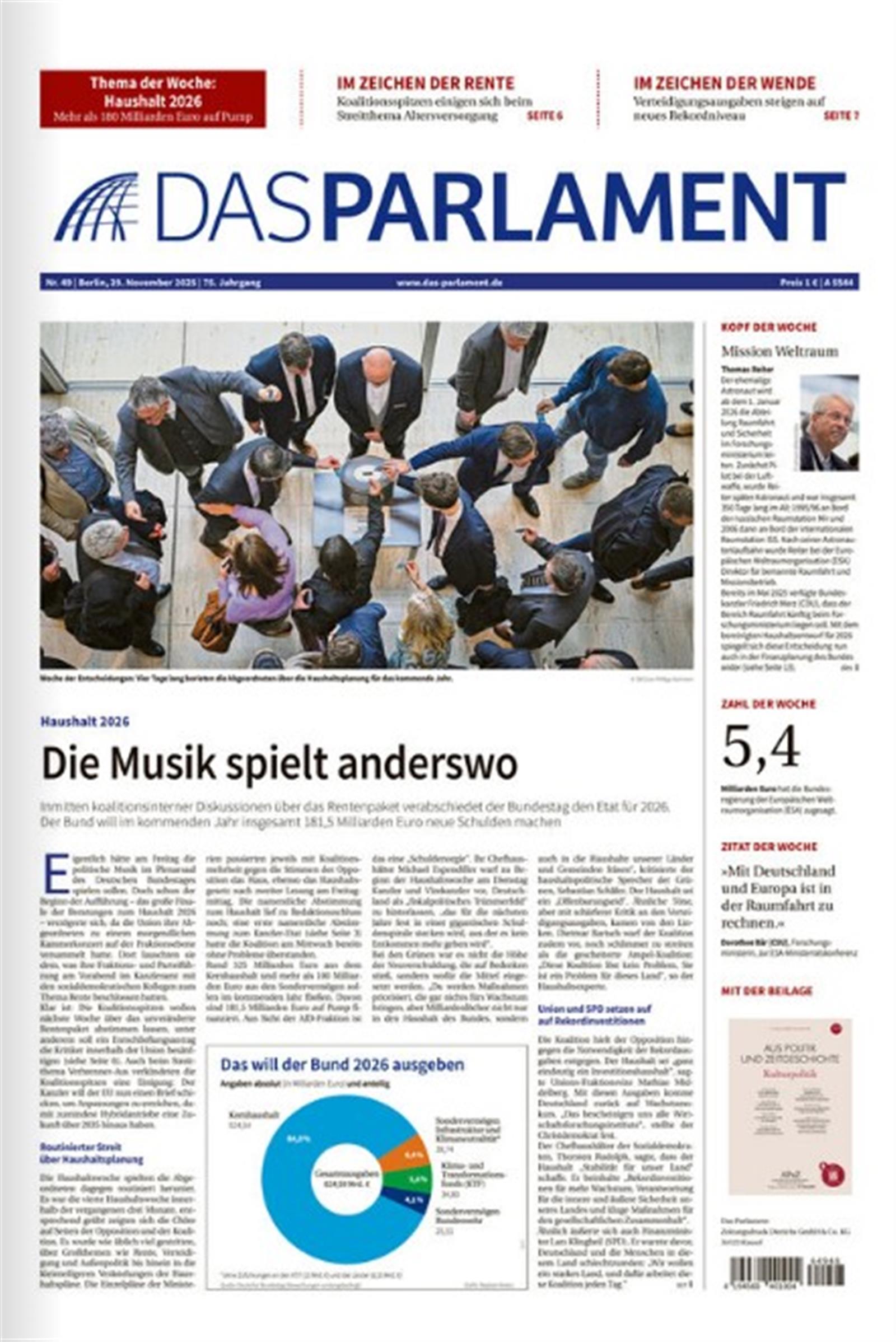 Die politische Wochenzeitung Das Parlament, gegründet 1951, wird vom Deutschen Bundestag herausgegeben und dokumentiert das parlamentarische Geschehen im Deutschen Bundestag, im Bundesrat, im Europäischen Parlament und in den Länderparlamenten sowie bedeutende Ereignisse in ausländischen Parlamenten.