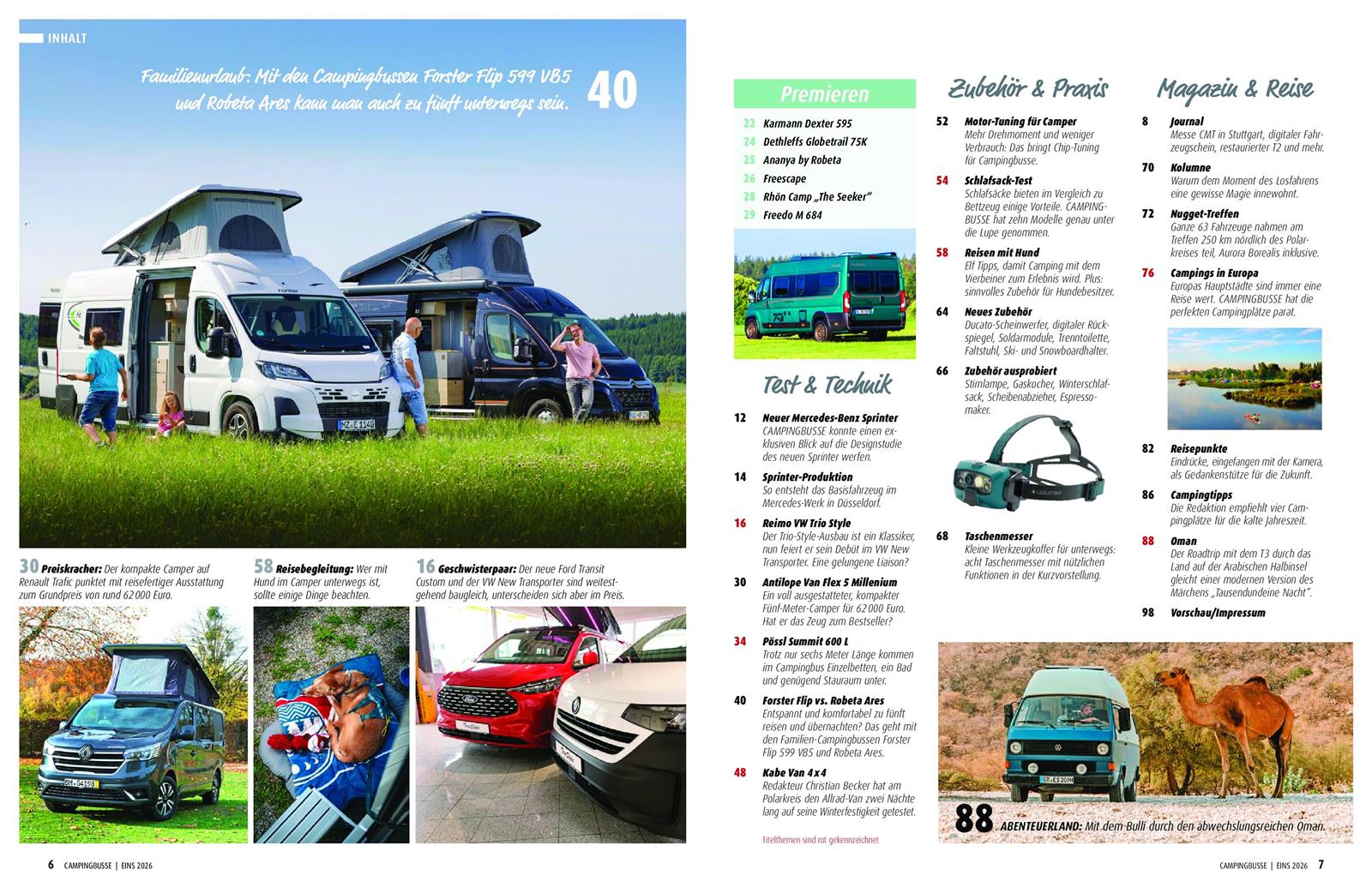 Die Zeitschrift Promobil Campingbusse bietet eine umfassende Palette an Inhalten, die sich speziell an Campingbus-Enthusiasten richten. Dazu gehören ausführliche Testberichte über die neuesten Modelle, die sowohl technische Details als auch praktische Erfahrungen der Nutzer berücksichtigen. Zusätzlich werden informative Nutzertipps gegeben, die den Lesern helfen, das Beste aus ihrem Campingbus herauszuholen. Hierbei werden Themen wie Ausstattung, Reiseziele und Pflege behandelt, um eine optimale Nutzung zu gewährleisten. Ein weiterer wichtiger Bestandteil sind Berichte über die aktuellen Trends und Entwicklungen in der Campingbus-Branche, die helfen, die Leser über Innovationen und Marktveränderungen auf dem Laufenden zu halten.