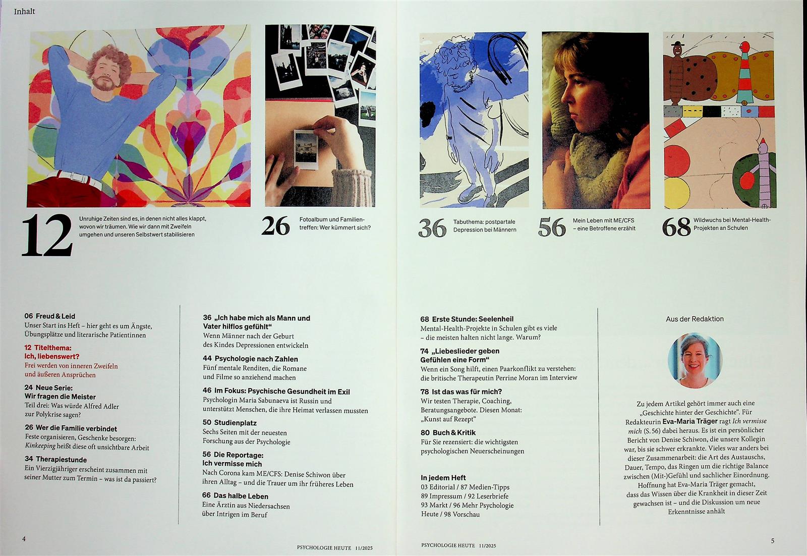 Die Zeitschrift bietet praxisnahe Tipps von Experten, die das eigene Leben und zwischenmenschliche Beziehungen verbessern. Auch Interviews, Rezensionen und wissenschaftlich fundierte Artikel sind fester Bestandteil des Magazins, sodass Leser immer über die neuesten Entwicklungen informiert bleiben.