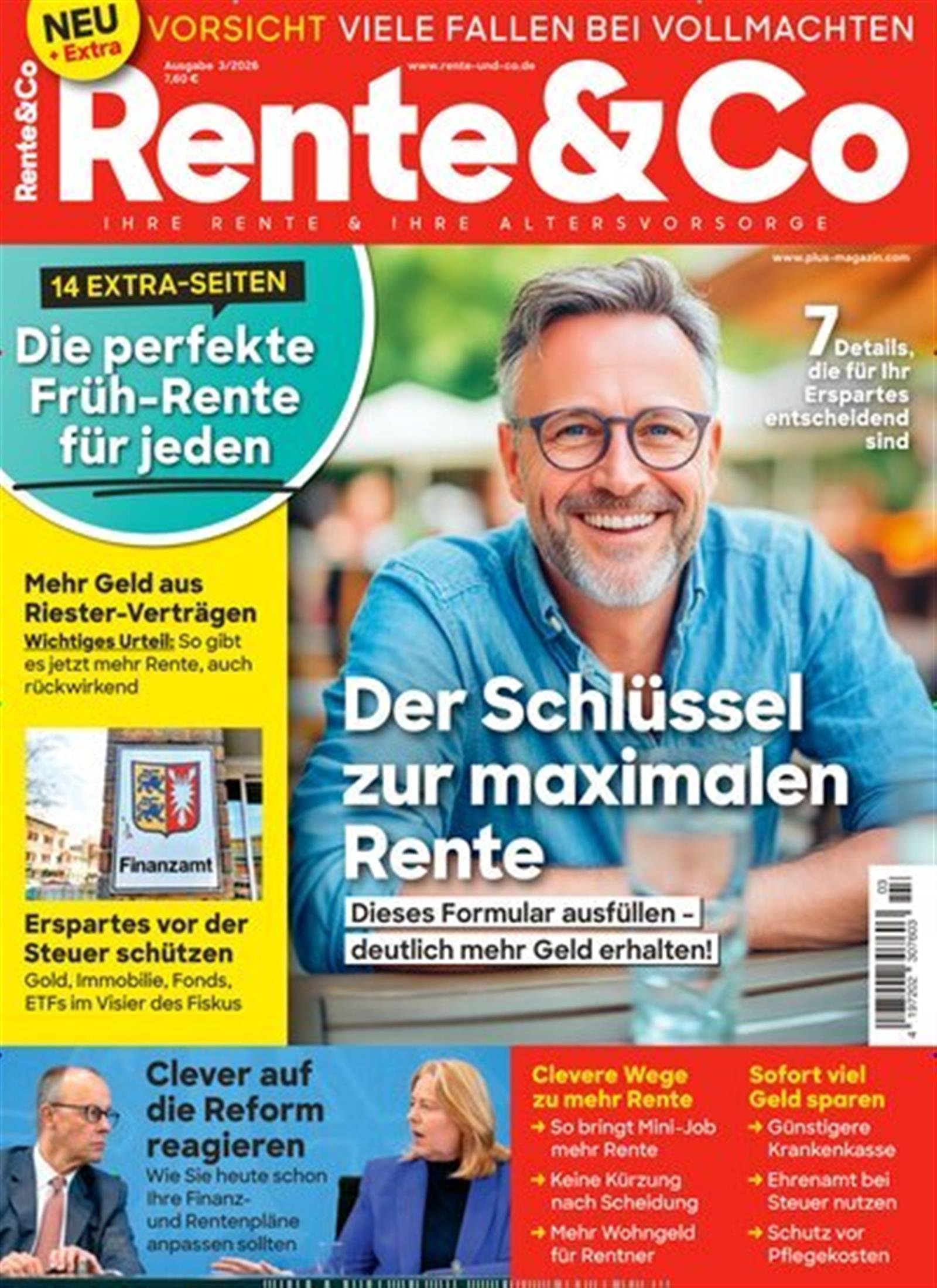 TOP Zeitschrift, Pflicht für jeden VOR-Rentner - ab 5 Jahren vor der Rente, um die vielen Fallstricke die, die Politik und die Sozialkassen einbauen - zu umgehen. Bitte so weitermachen und herzlichen Dank für die Hinweise. Boschan