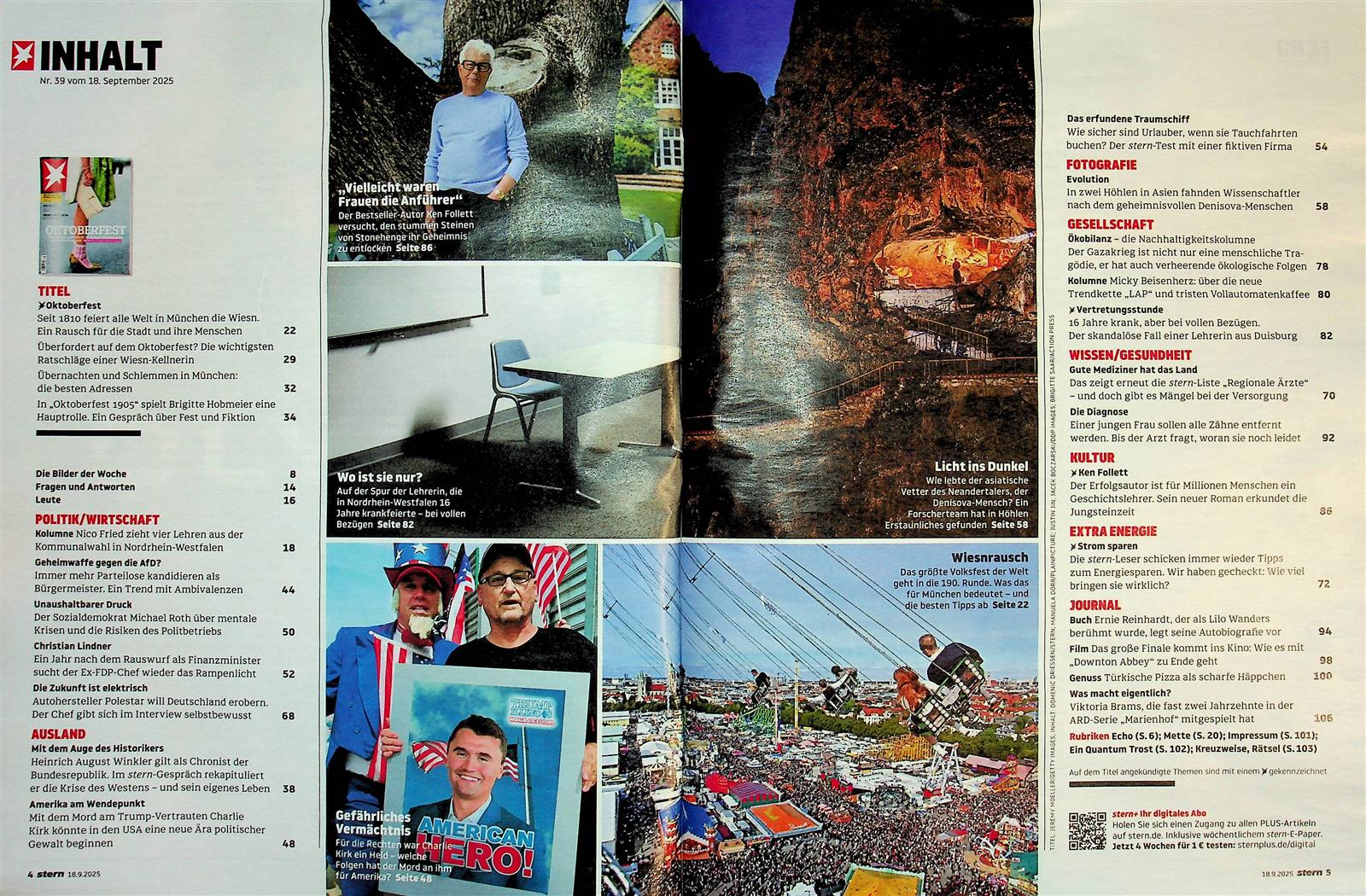 Seine besondere Themenmischung aus gesellschaftsrelevanten Themen und unterhaltsamen Extras, die klare Haltung und seine großzügige Optik zeichnen das von Henri Nannen gegründete Magazin Stern aus. Investigativer Journalismus und aufwendige Recherchen sind Basis für gründliche, in die Tiefe gehende Informationen und seine verlässliche Qualität in der Berichterstattung. Kombiniert werden sie mit herausragenden Bildern aus den Kameras der renommierten Fotojournalisten. Nicht verwunderlich, dass das Magazin für seine Optik immer wieder von Fach-Jurys mit Preisen ausgezeichnet wurde.