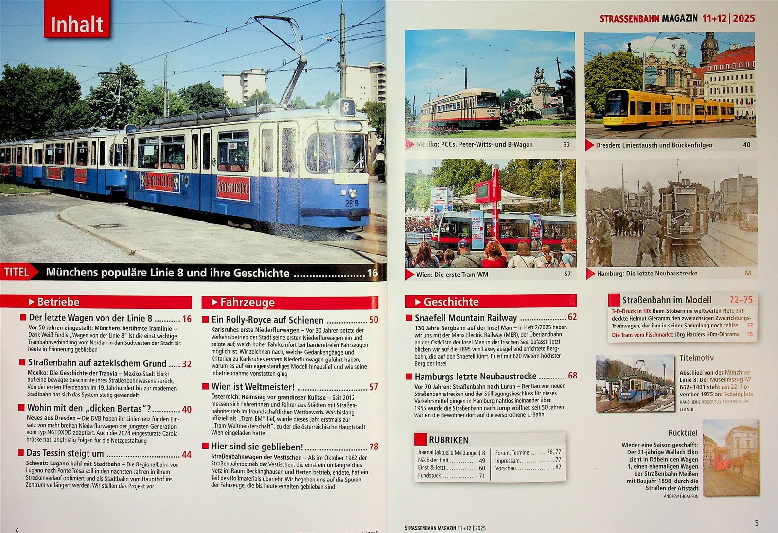 Die ganze Welt der Tram Monat für Monat neu erleben, das geht nur mit dem Strassenbahn Magazin. Die nach eigener Aussage größte Straßenbahn-Zeitschrift Europas verknüpft Historisches und Aktuelles aus der Welt des elektrischen Nahverkehrs und bietet neben umfänglichen Geschichten und Wissen zum Thema auch die nostalgischen Bilder der Trambahnen. In diesem Magazin gibt es für Straßenbahn-Liebhaber einfach immer etwas Neues zu entdecken.