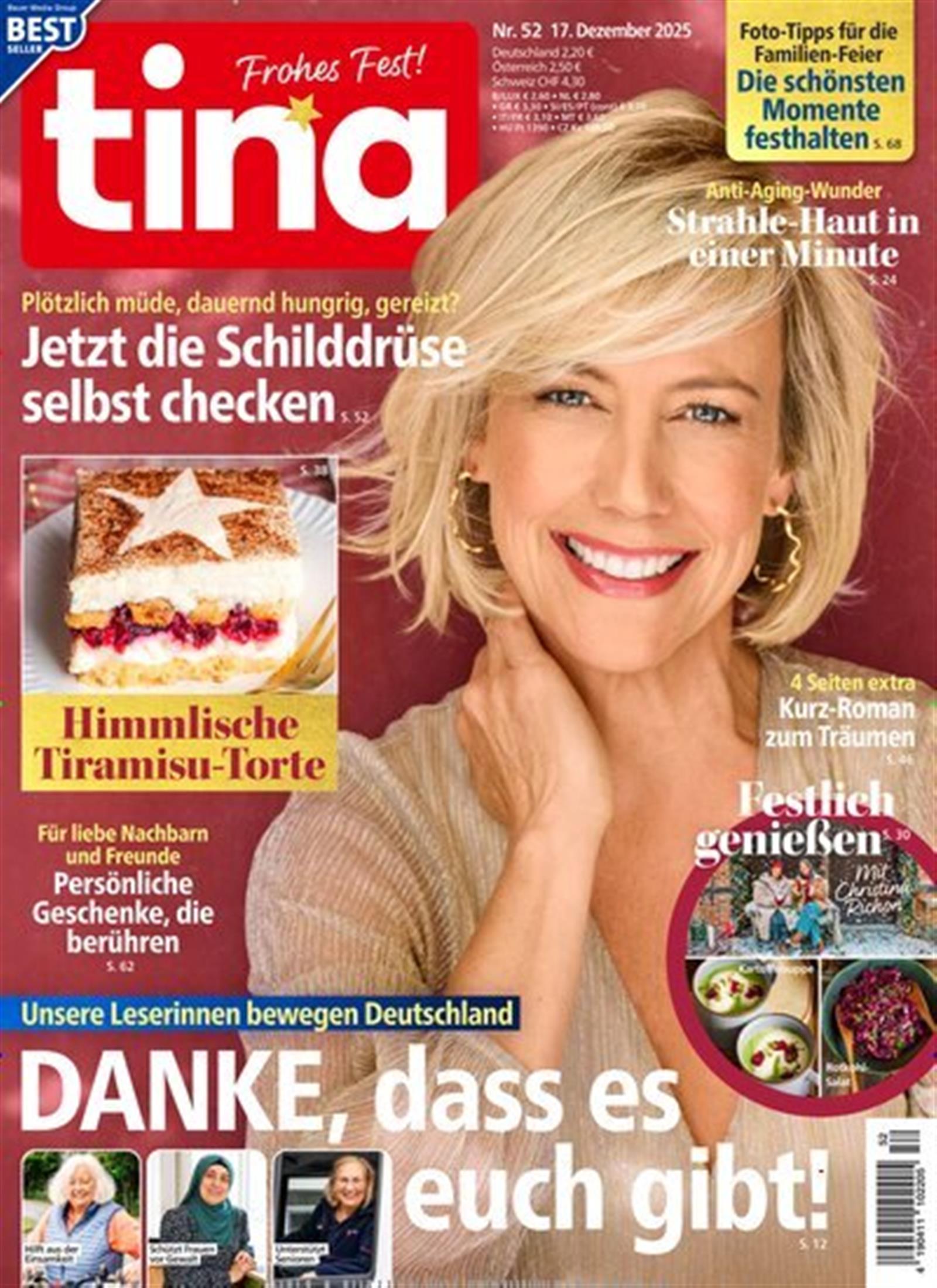 Seit 1975 erscheint die Zeitschrift Tina und ist damit einer der Dauerbrenner unter den klassischen Frauenzeitschriften. Das Magazin erscheint einmal in der Woche.